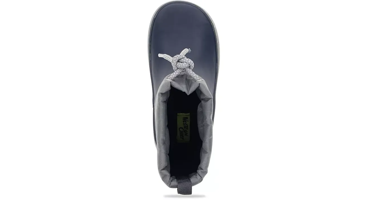 Make sure he stays safe in the Western Chief Element boys’ rain boot. With a waterproof natural rubber upper featuring a nylon collar with drawcord closure, this pull-on rain boot also uses reflective components for extra protection. The fleece lining adds warmth, while the durable outsole offers traction for a content time enjoying the weather.