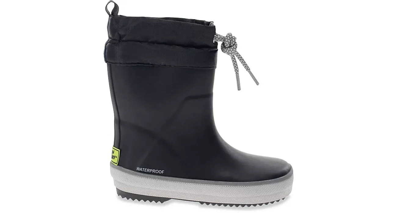 Make sure they stay safe in the Western Chief Element infant boys’ rain boot. With a waterproof natural rubber upper featuring a nylon collar with drawcord closure, this pull-on rain boot also uses reflective components for extra protection. The fleece lining adds warmth, while the durable outsole offers traction for a content time enjoying the weather.
