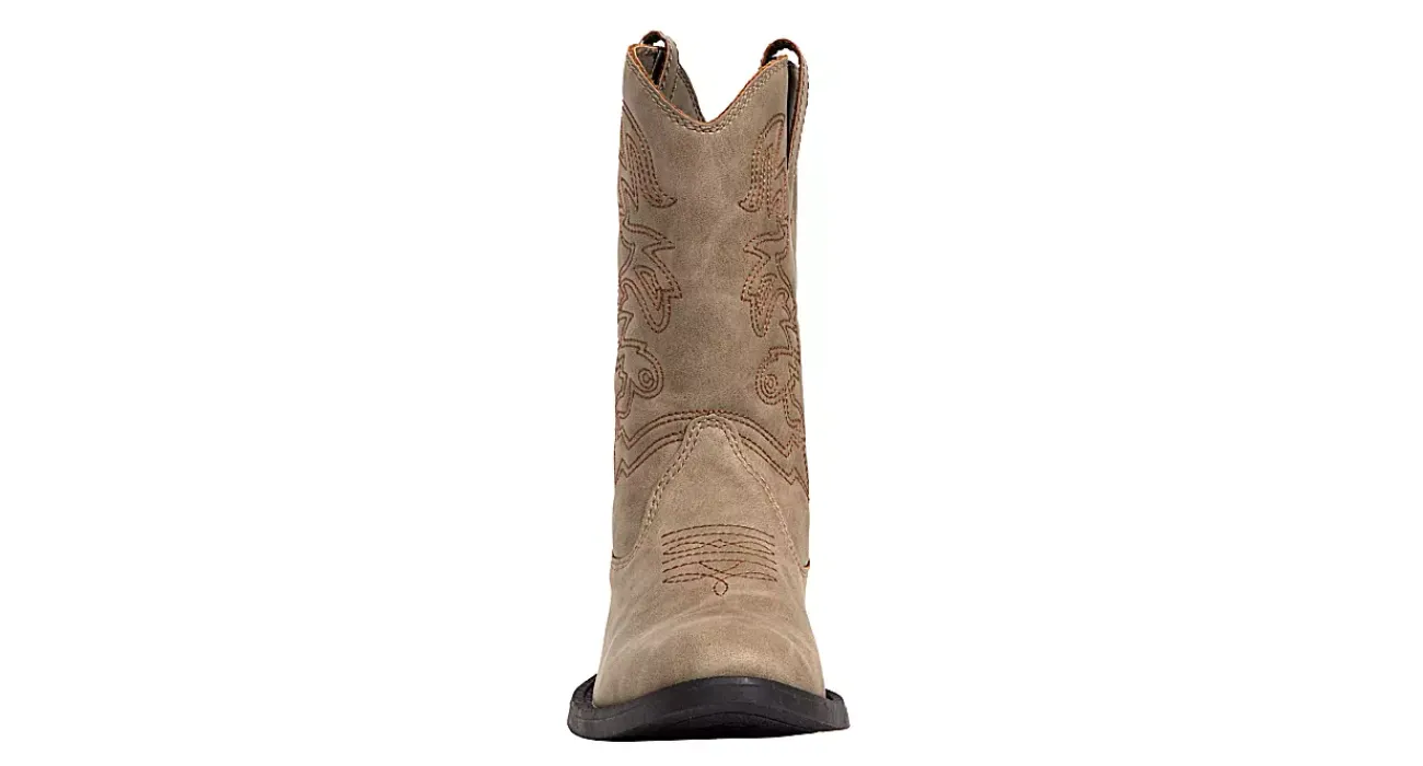 Complete their western look in the Deer Stags Ranch kids’ boot. Slip them on over jeans easily with side pull tabs and no worries about scuffing up your floor due to the non-marking rubber outsole. Your cowboy will love these authentic looking boots.