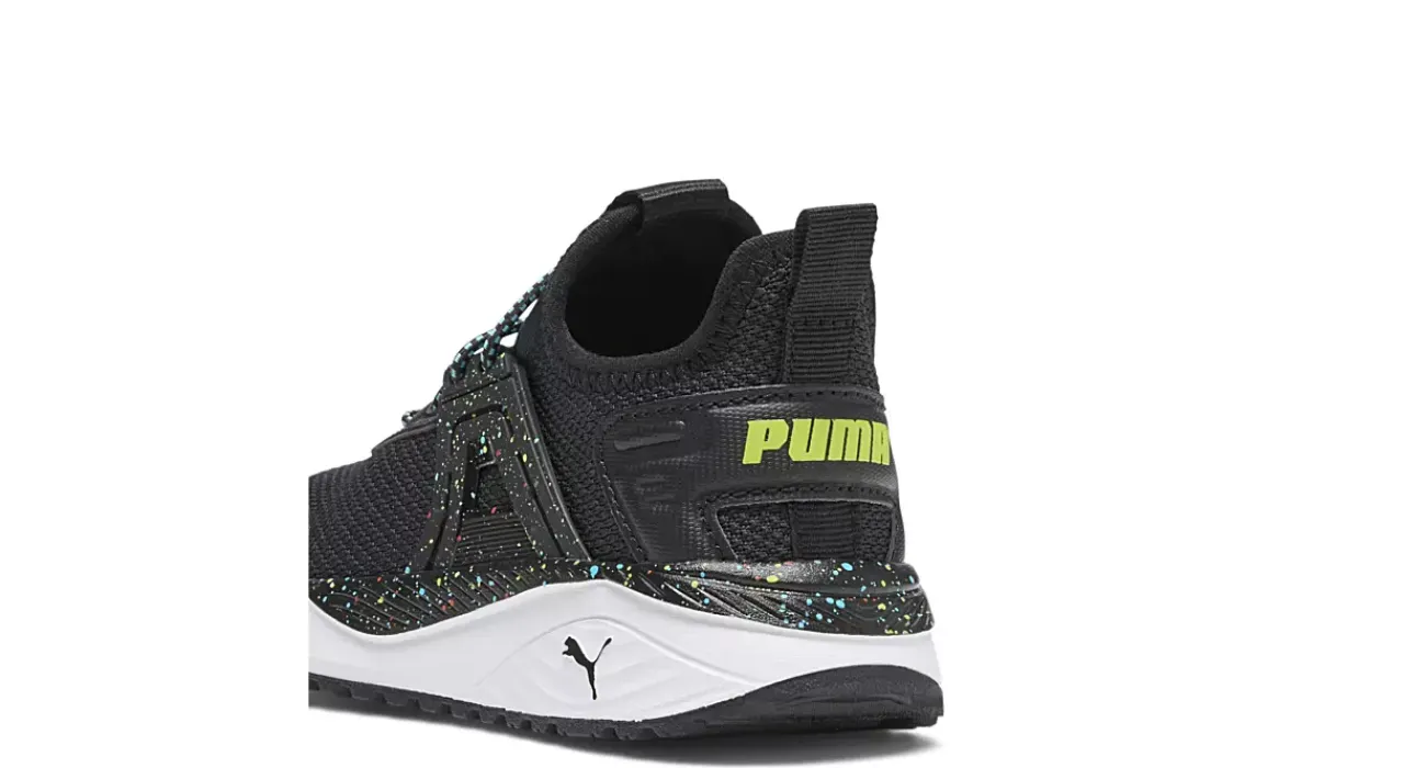 Keep him on track with the Pacer 23 Mesh Full Throttle Jr boys’ sneaker by PUMA. With a breathable mesh & synthetic upper featuring a speckled midfoot TPU cage, this lace-up sneaker has a synthetic toe wrap for extra protection. The SoftFoam+ footbed & EVA midsole cushion his feet, while the outsole provides lightweight, flexible traction.
