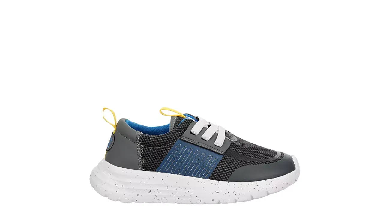 He’ll enjoy every step in the HEYDUDE Sirocco Play Youth sneaker. With a colorblock mesh upper, treated with water repellent spray, featuring dual pull tabs for easy entry, this slip-on sneaker is summer ready. The removable insole cushions his foot, while the lightweight outsole keeps him going for hours.