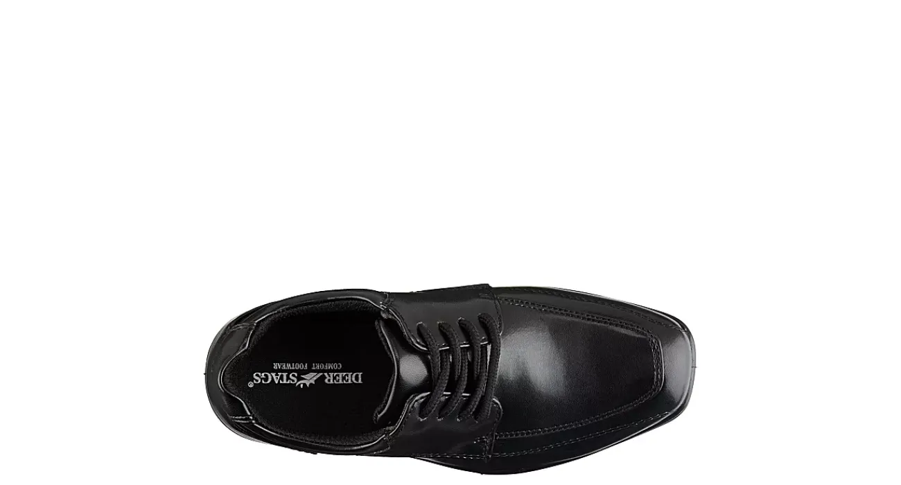Smart-dressed dudes will look so Sharp in this infant boys’ shoe from Deer Stags®. It’s crafted using smooth faux leather and designed with a square toe for a handsome silhouette.