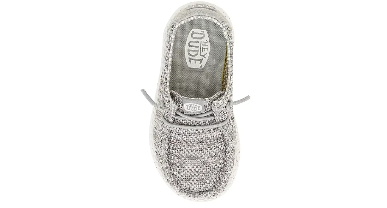 Keep him going in the HEYDUDE Wally Toddler infant boys’ slip-on sneaker. With an airy, stretch mesh upper featuring elastic laces for a secure fit, this shoe also has a speckled midsole for extra style. The removable foam insole cushions his little foot, while the lightweight outsole provides flexible traction.