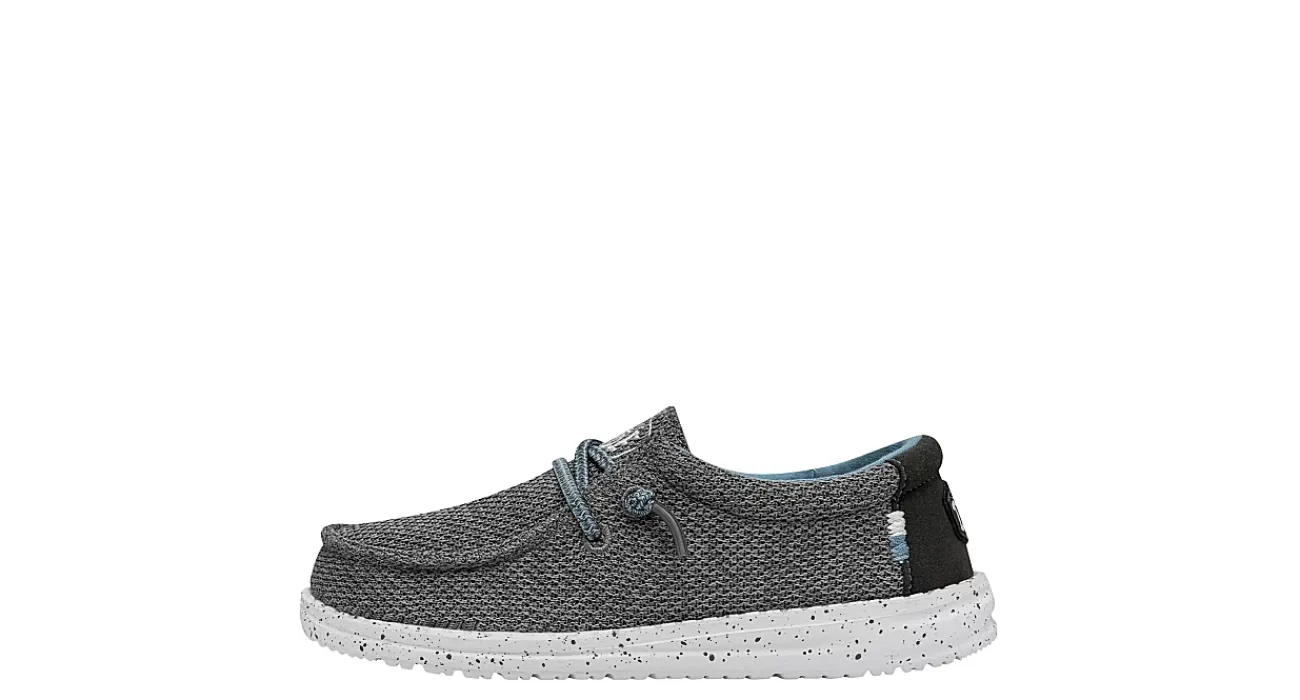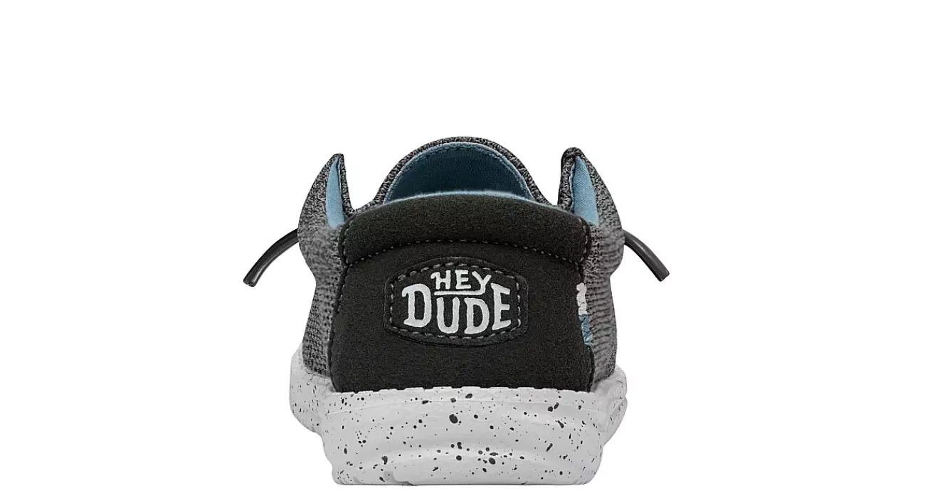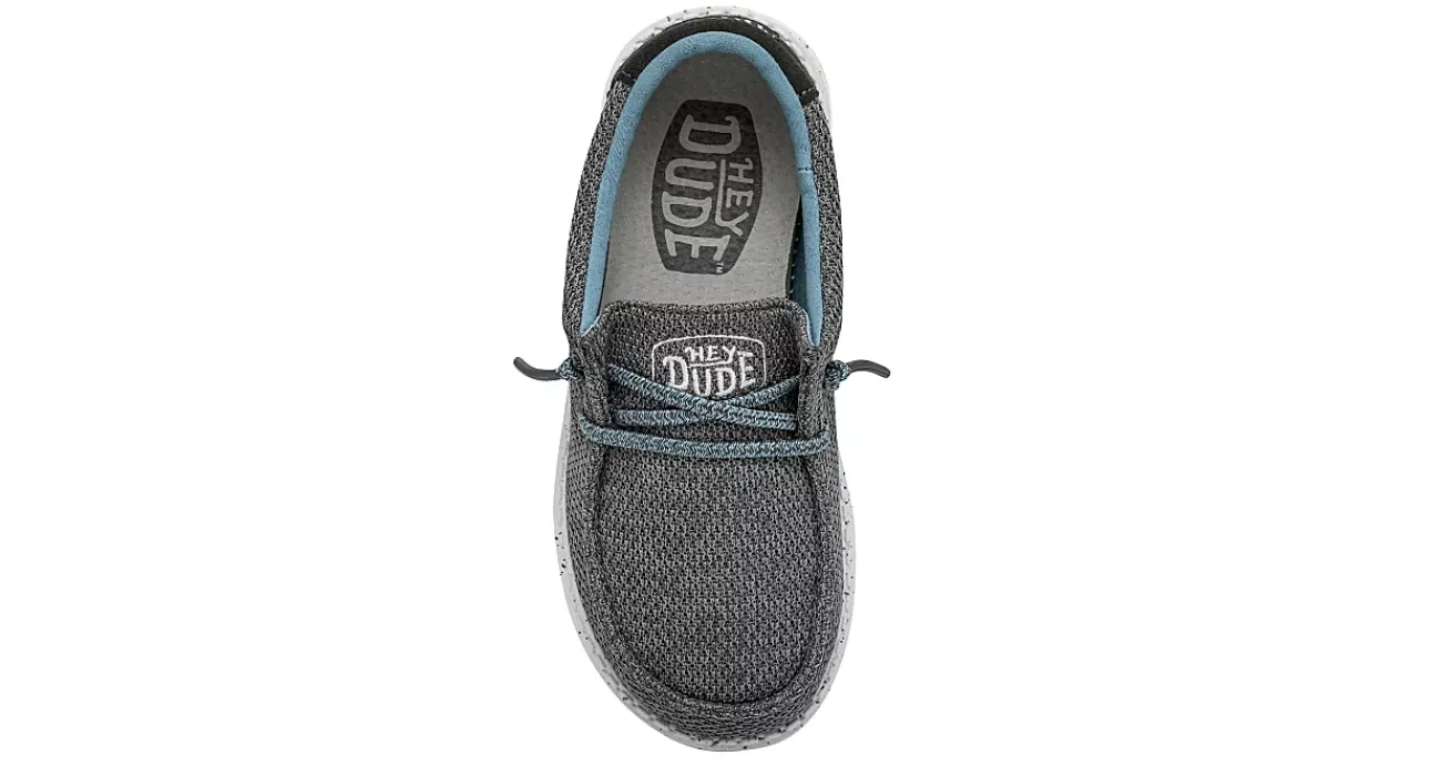 Keep him going in the HEYDUDE Wally Youth Sox boys’ slip-on sneaker. With an airy, sharkskin-looking mesh upper featuring elastic laces for a secure fit, this shoe also has a speckled midsole for extra style. The removable foam insole cushions your foot, while the lightweight outsole provides flexible traction.