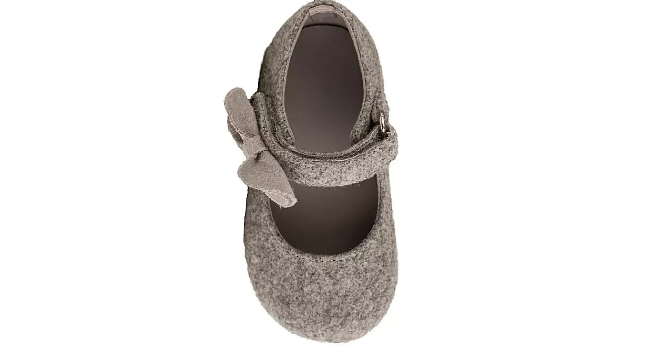 Fuzzy fall cuteness is what the Camilla infant girls’ dress ballet flat from Baby Deer brings out in your little one. With a sweater knit fabric upper featuring a large bow detail on the strap, this Mary Jane flat pairs well with leggings. The look gets an even bigger boost if you add a cardigan and dress.