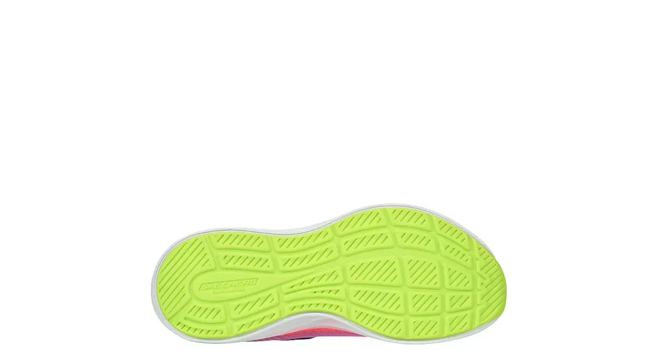 She’ll hop, skip and play in the Skechers Go-Run Accelerate sneaker. With a mesh upper and dual pull tabs for easy entry, this sneaker has stretch laces to perfectly fit her little foot. The footbed comfort every step while the durable outsole keeps her grounded.