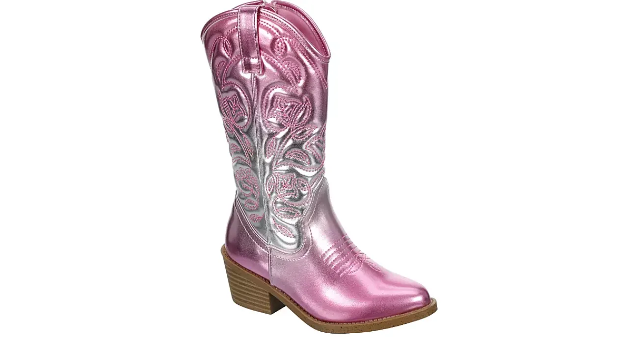 Let your child strut their stuff in these stylish Western boots. With a gradient metallic finish, a stacked heel, and a side zip closure, these boots are both fashionable and comfortable.