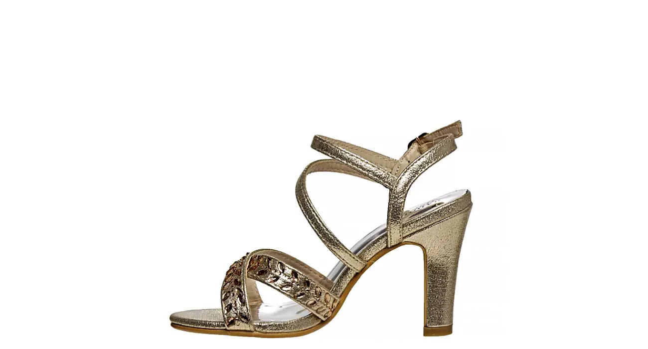 She’ll look stunning in the Badgley Mischka Strappy Metallic girls’ dress sandal. With a synthetic upper featuring leaf-shaped embellishments for extra flair, this buckle strap sandal brightens up any special occasion. The lightly cushioned footbed soothes her foot, while she navigates that generous, but stable 3″ heel as it accentuates her ankle for a flattering look.
