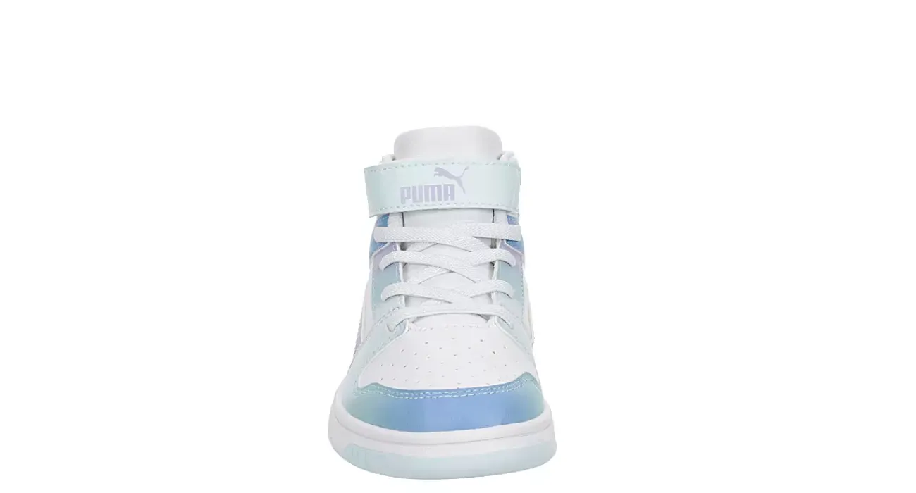 Teach her the game in the PUMA Rebound Layup girls’ sneaker. With an ombre faux leather upper featuring a perforated toe for breathability, this lace-up shoe also has a padded collar & tongue for extra comfort. The SoftFoam+ sockliner cushions every step, while the non-marking rubber outsole provides outstanding traction on and off the court.