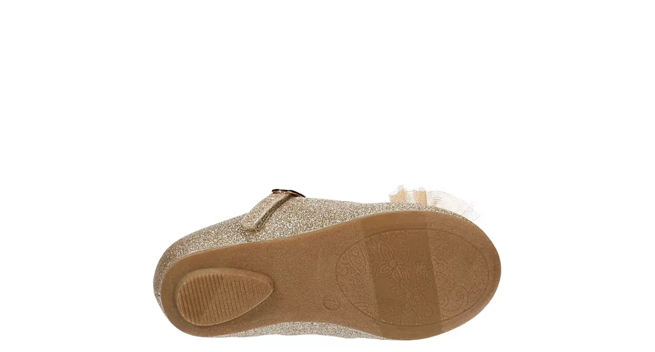 Style her up in the Cupcake Couture Bowtiful infant girls’ flat. With a glitter upper featuring a big bow accent at the vamp, this cute Mary Jane is perfect for special occasions. The padded insole cushions her feet while the outsole adds durability.