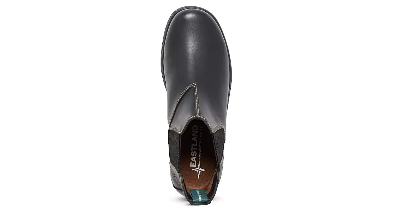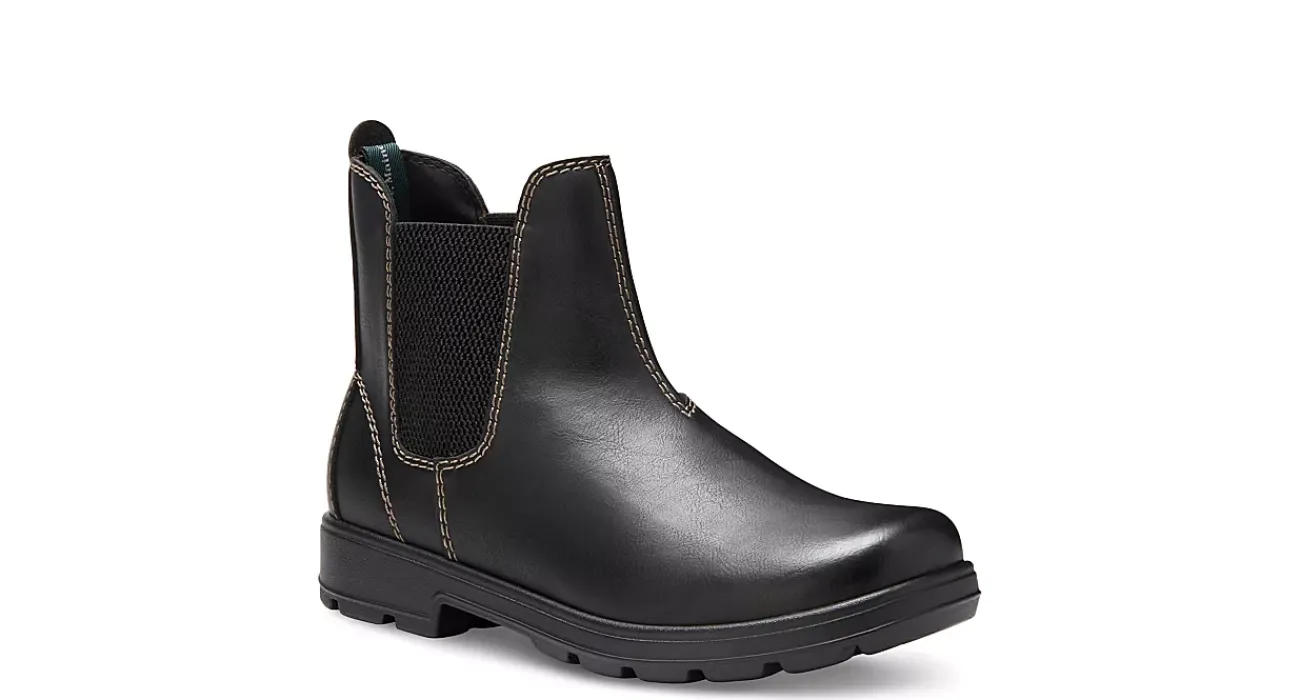 Easily boost your style with the Cyrus Chelsea boot from Eastland. Featuring a faux leather upper and elastic goring, these 5 1/2″ boots fit right in with jeans or slacks. The fabric-lined Memory Foam insole cushions while the small block heel adds subtle lift.