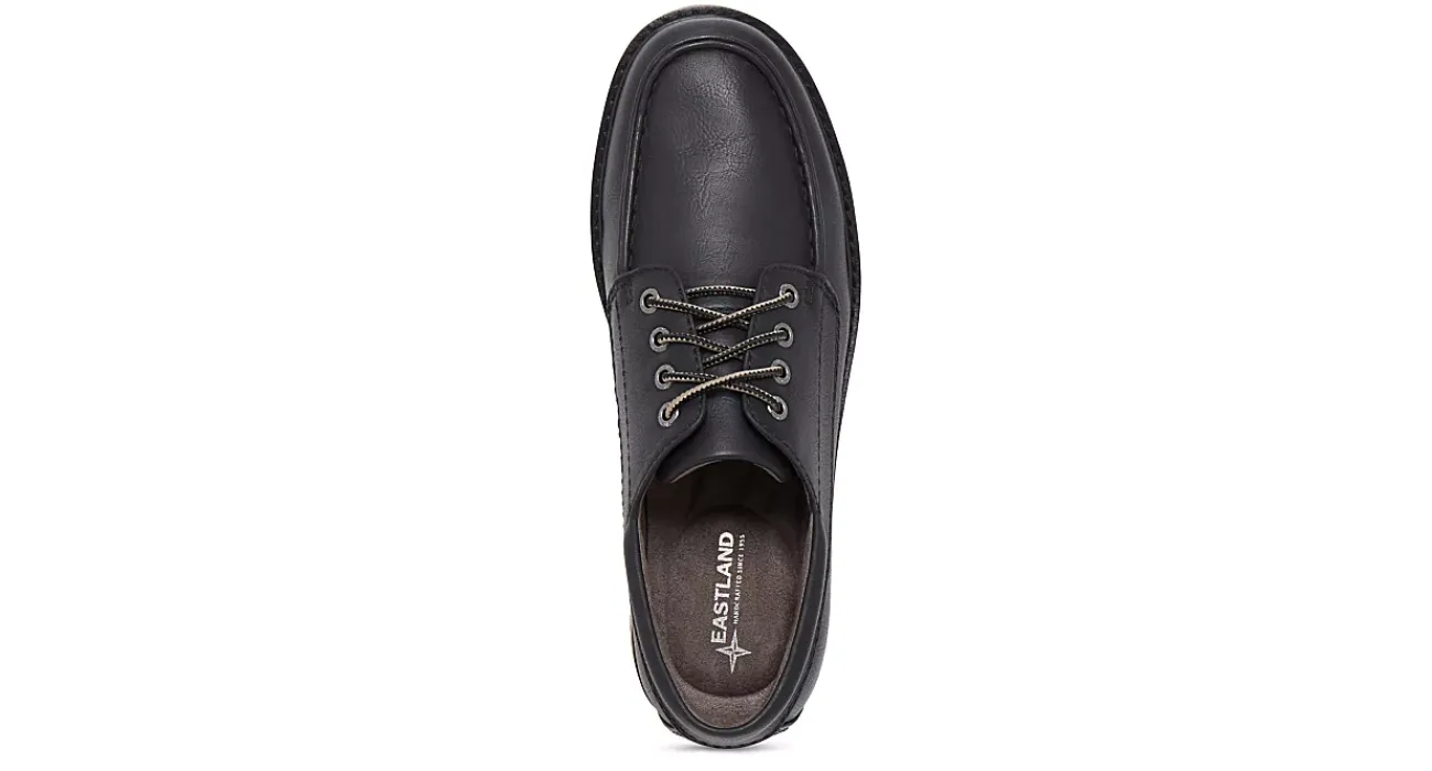 Everyday styling in the Jed oxford from Eastland. With a faux leather upper and smooth fabric lining, this shoe also features a moc toe. The insole controls moisture and cushions, while the lightweight sole provides durable traction.