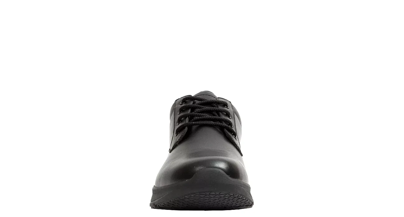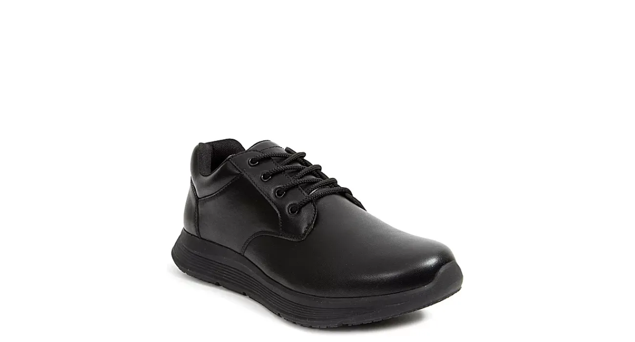 Stay comfortable and productive in the Deer Stags Montez Slip Resistant work shoe. With a smooth faux leather upper, this shoe has a padded collar for extra comfort. The Memory Foam insole gives all-day cushioning, while the durable rubber outsole is slip- and oil-resistant, perfect for on-the-job support.