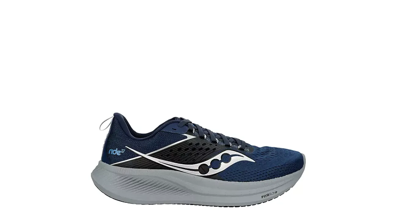 Your run keeps comfort first in the Saucony Ride 17 men’s running shoe. With a 360-degree adaptive fit mesh upper featuring a padded collar & tongue, this lace-up sneaker incorporated extra breathability and a rear pull tab for easy entry. The PWRRUN+ foam is advanced for lightweight cushioning that lasts all day, while the outsole delivers more rebound to reenergize your foot for longer runs.