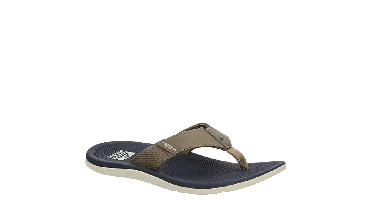 Leave your worries behind and just head for sun in the REEF Santa Ana men’s flip flop sandal. With a synthetic upper and padded jersey lining for slip-on feel and comfort, these thong sandals are perfect for laid-back days. The compression molded EVA footbed cradles your foot while the rubber cupsole provides traction and stability.