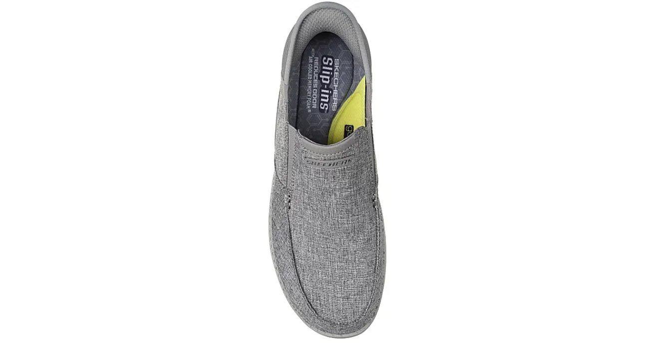 Chill through your day in the Skechers Slip-ins RF: Melson – Medford men’s sneaker. With a Relaxed Fit® woven mesh upper featuring an exclusive Heel Pillow™ for a secure fit, this Skechers Hands Free Slip-in® has a charcoal infused insole to neutralize odor. The Skechers Air-Cooled Memory Foam® cushions your foot, while the Skechers Goga Mat Arch™ keeps your steps happy.