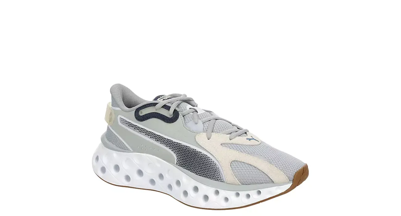 Increase your futuristic rhythm in the Softride Frequence men’s running shoe from PUMA. With a breathable mesh & synthetic upper featuring a branded rear pull tab for easy entry, this lace-up shoe looks great in motion or standing still. The SOFTRIDE foam offers all-day cushioning, while the swiss-cheese looking midsole works with the outsole for smooth strides.