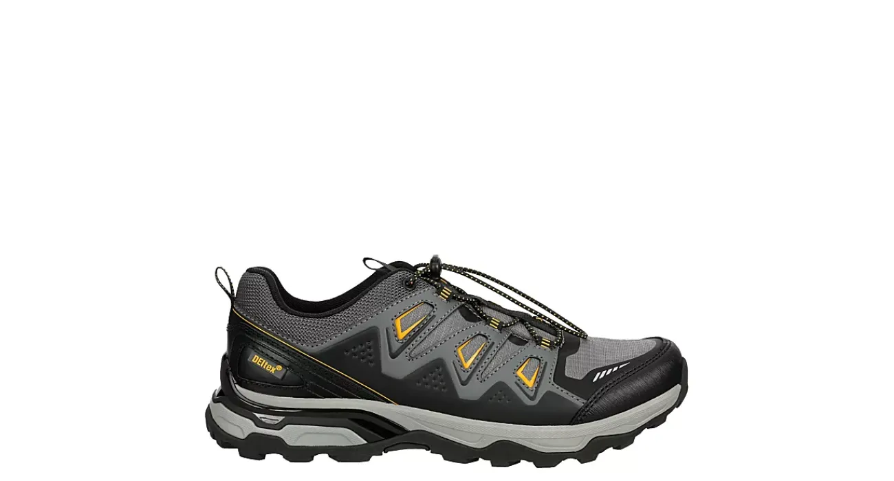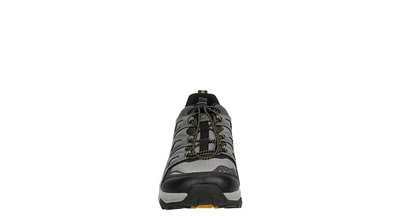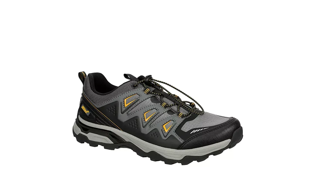 Stay ready for a quick hike in the Highland Creek Trail Bound men’s hiking shoe. With a faux leather upper featuring a reinforced toe to guard against abrasions, this lace-up shoe also has dual pull tabs for easy entry. The footbed cushions your steps while the durable sole supports your trek through rough terrain.