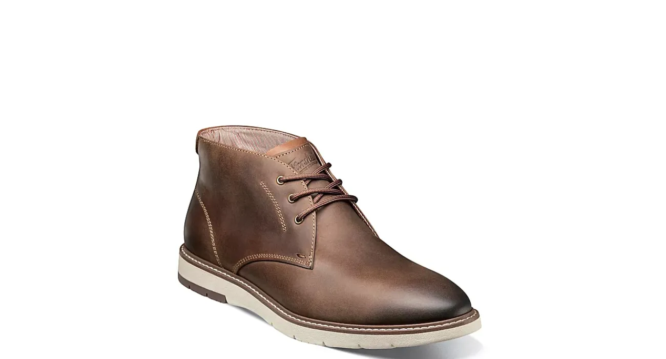 Best dressed accolades may follow you in the Vibe Plain Toe chukka boot from Florsheim. With a faux nubuck upper featuring breathable linings, this shoe is stylish anytime. The removable Comfortech footbed cushions every step, while the rubber traction pods & Flexsole technology make for even more comfort right away.