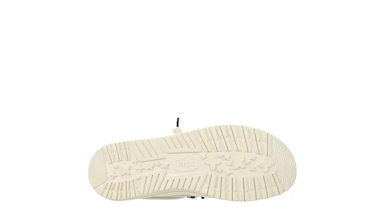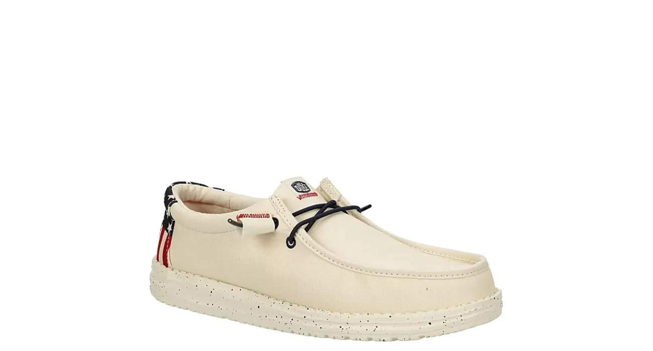 Showcase your pride with the HEYDUDE Wally Americana men’s slip-on sneaker. With a breathable textile upper featuring a padded ankle collar with a contrasting heel detail, this sneaker also has a printed sockliner. The removable foam insole offers cushioning, while the lightweight outsole is flexible enough to explore unfettered.