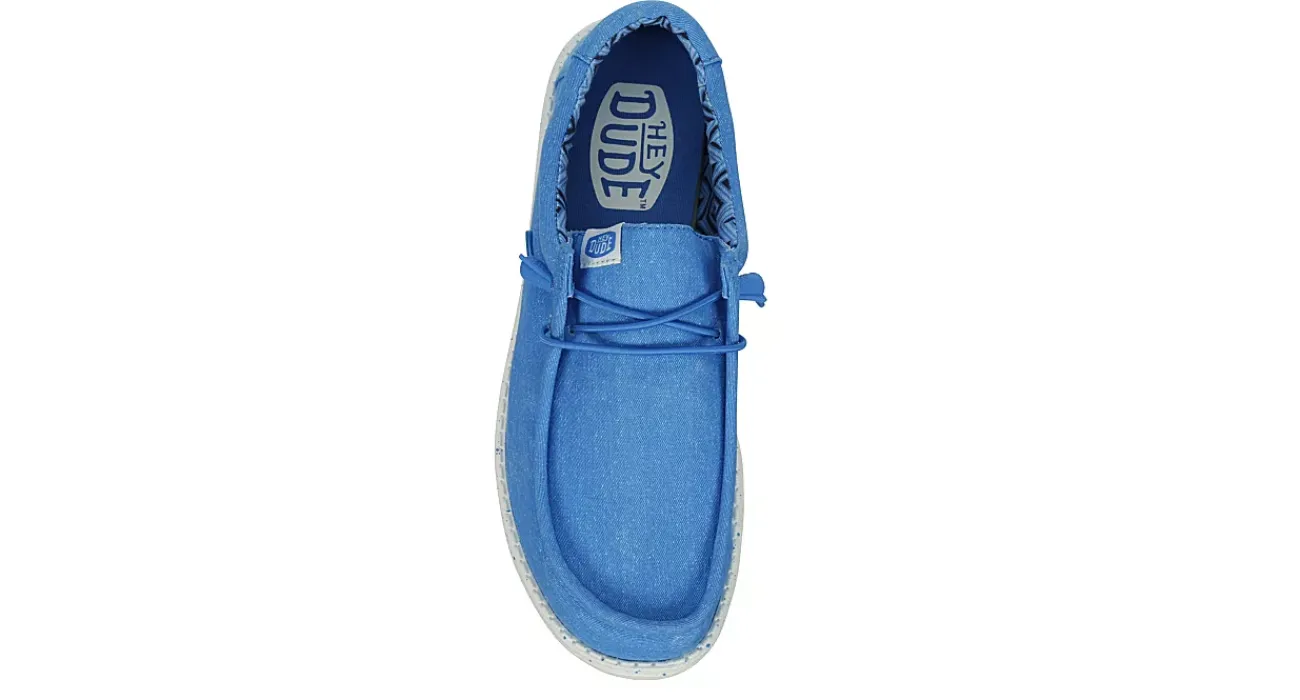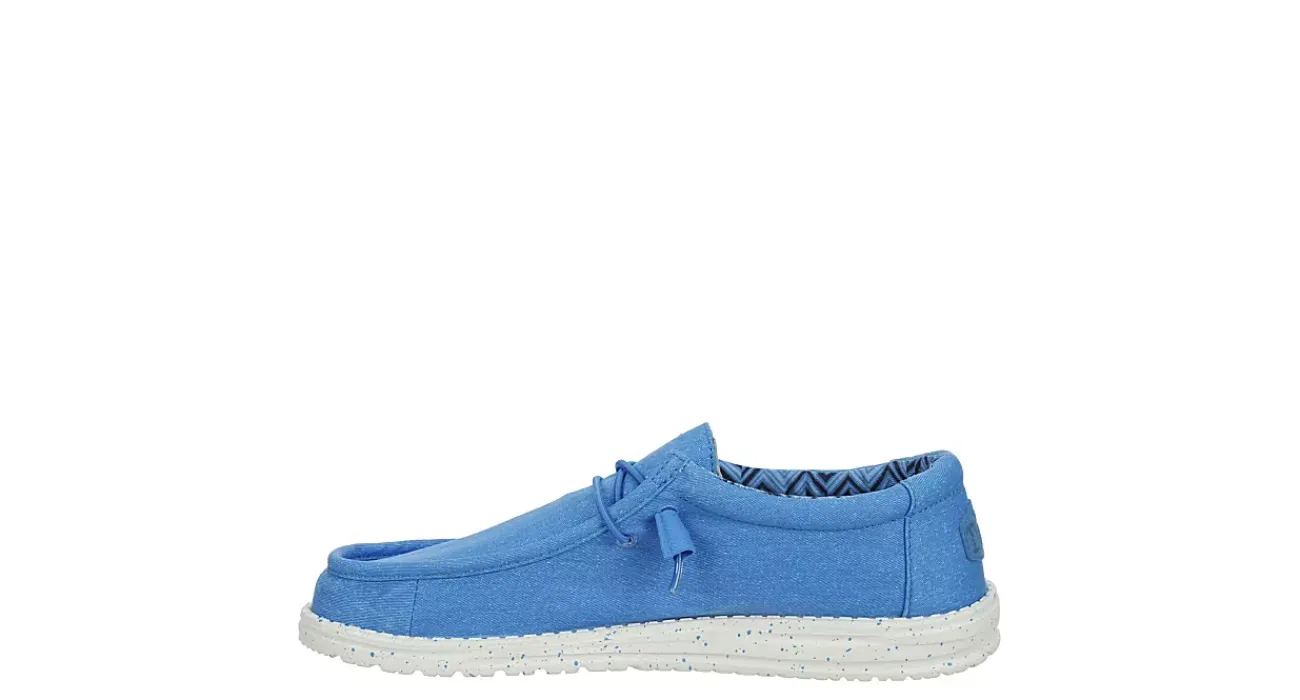 Relax into your passion with the HEYDUDE Wally men’s slip-on sneaker. With a canvas upper featuring a cushioned ankle collar for comfort, this sneaker also has elastic laces for a secure fit. The removable Memory Foam insole and leather-lining comforts your foot, while the ultralight outsole sets you free to explore unfettered.
