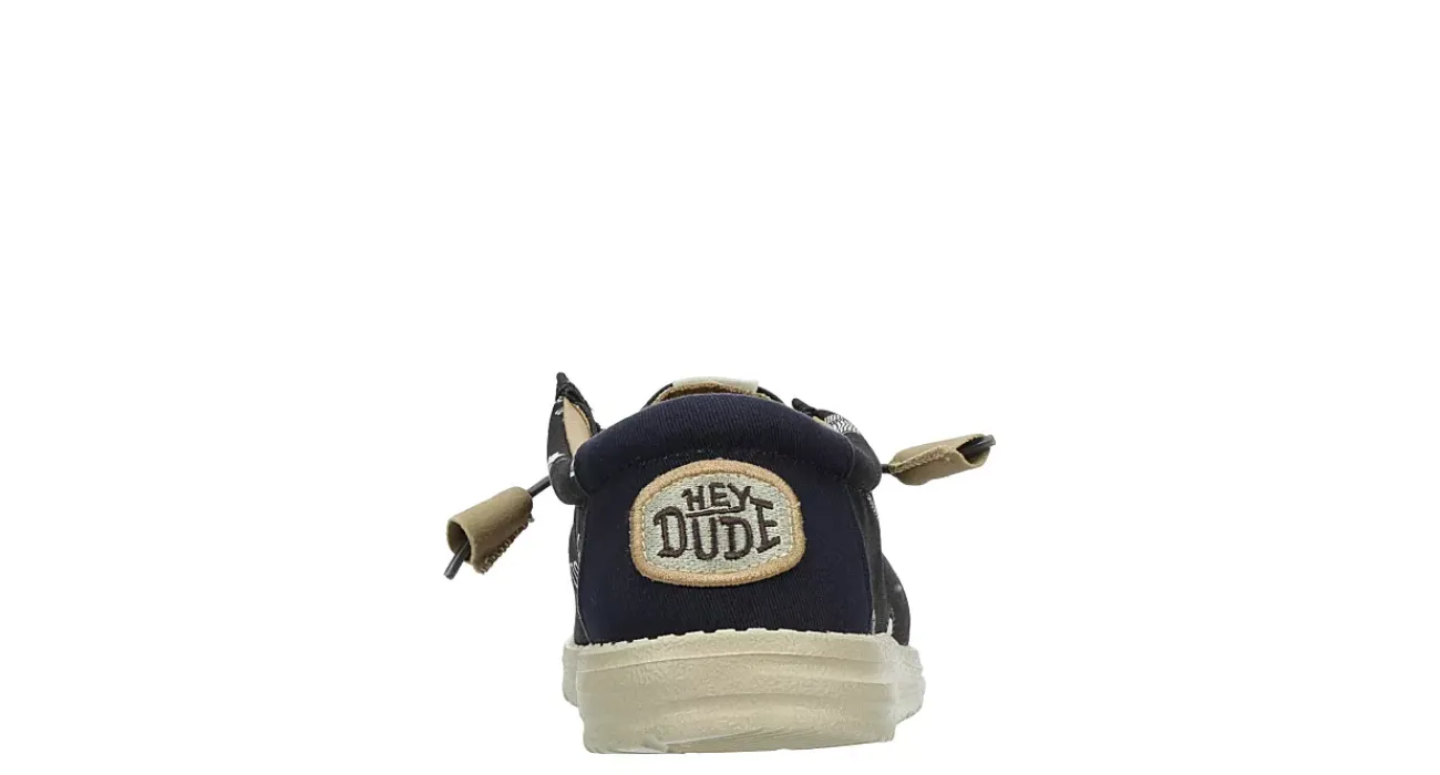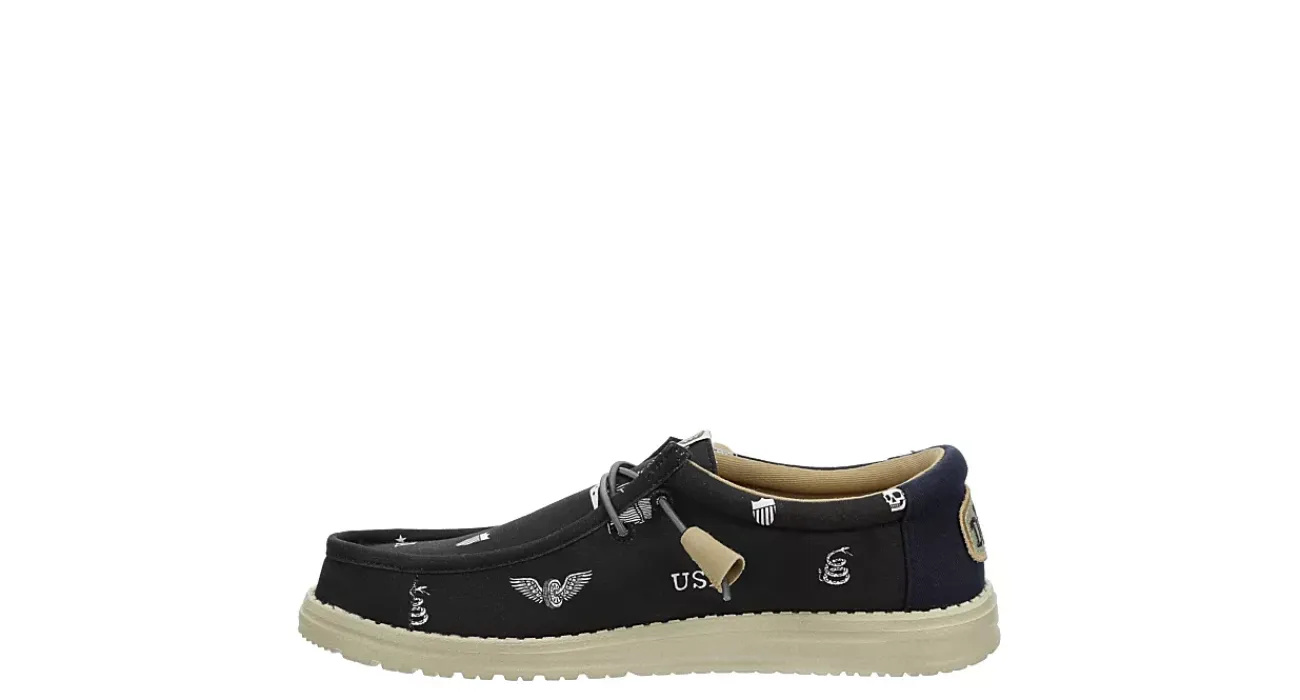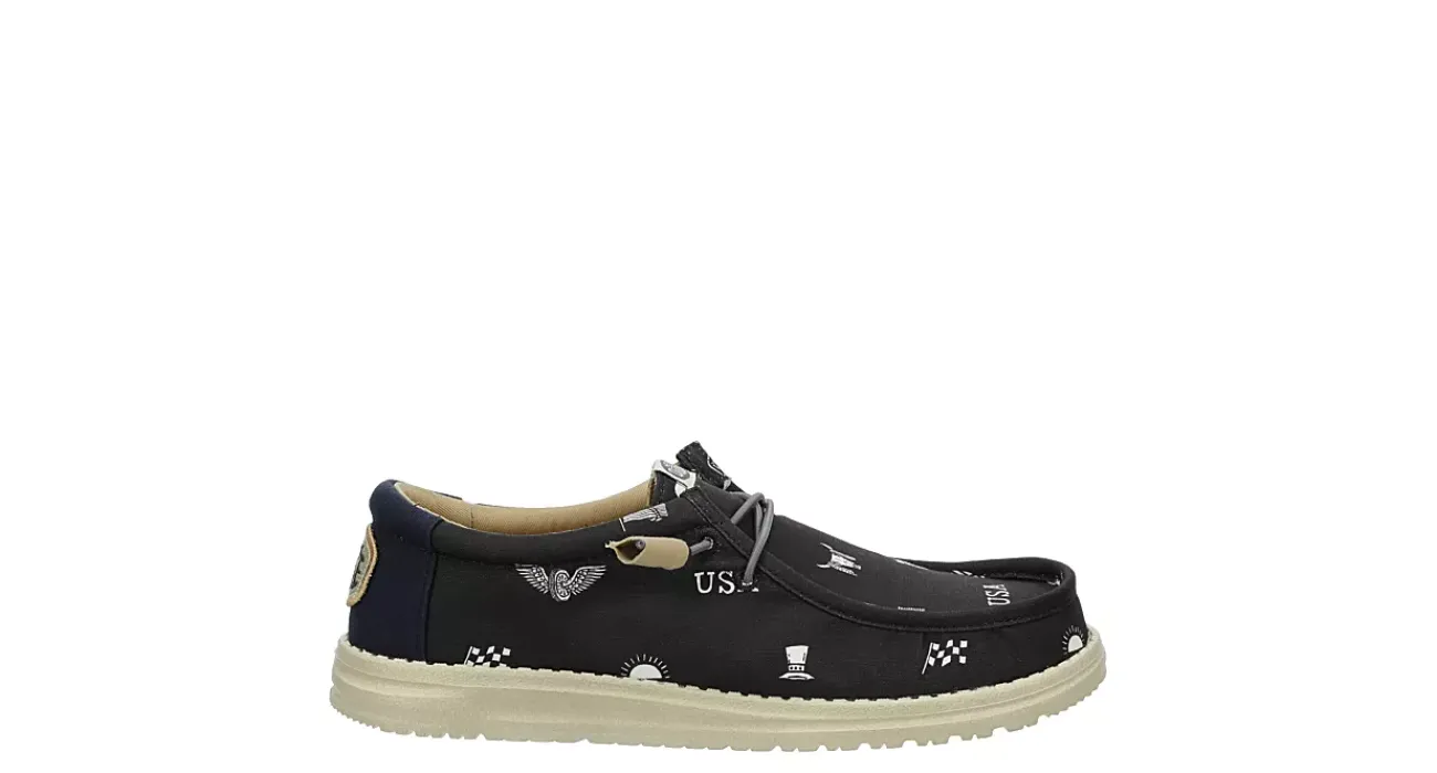Lean into your passion with the HEYDUDE Wally Stars N Skulls men’s slip-on sneaker. With a canvas upper featuring a padded collar for comfort, this rock-inspired shoe also has cool allover print. The insole cushions your foot, while the ultralight outsole sets you free to explore unfettered.