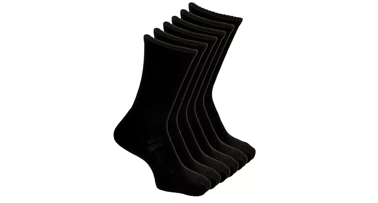 Grab the Rack Room Crew Large unisex socks 6 Pack while you’re back-to-school shopping. Made of breathable cotton featuring a ribbed cuff to stay put, this lightweight sock works well in the classroom or on the sports field. Pairs well with mid or high-top sneakers since the crew-length prevents chafing.