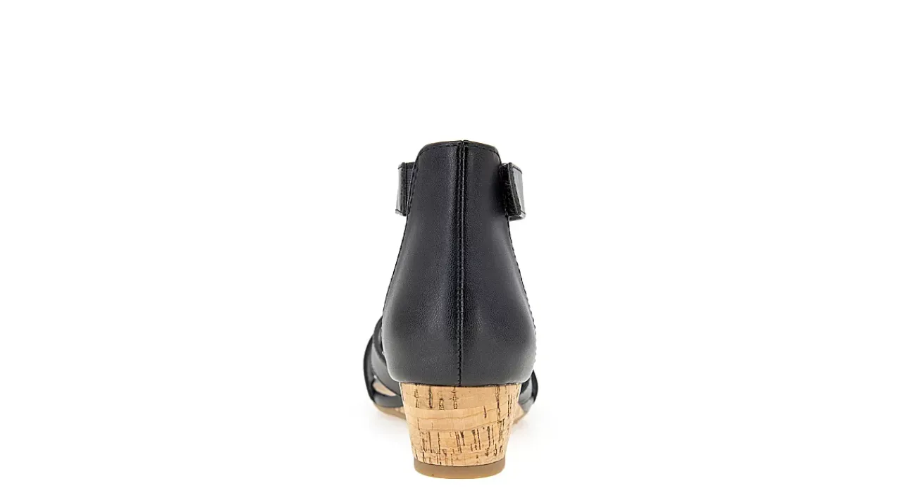 Seek the heat in the airy Alisha women’s wedge sandal from XOXO. With a faux leather upper featuring a subtly padded heel, this ankle strap sandal has a simple crisscross style that looks good with shorts or capris. The insole soothes your foot while the cork wedge heel adds stable lift.