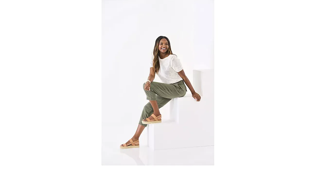 Strut into summer in the Xappeal Amelia women’s wedge sandal. With a synthetic upper and metallic accents, these tan wedge sandals offer a breezy approach to summer fashion with an espadrille midsole. The lightly padded footbed soothes your feet while the synthetic traction sole keeps you stable.