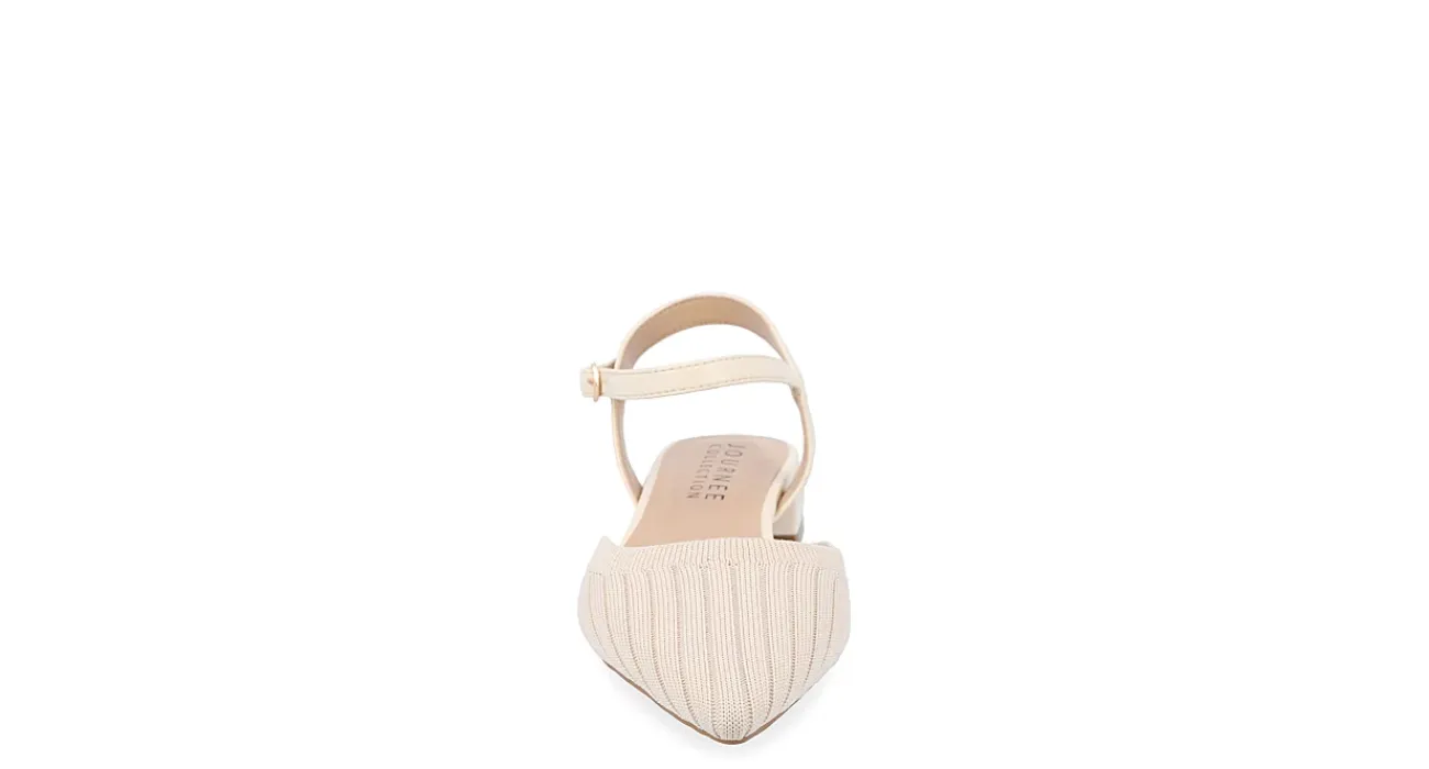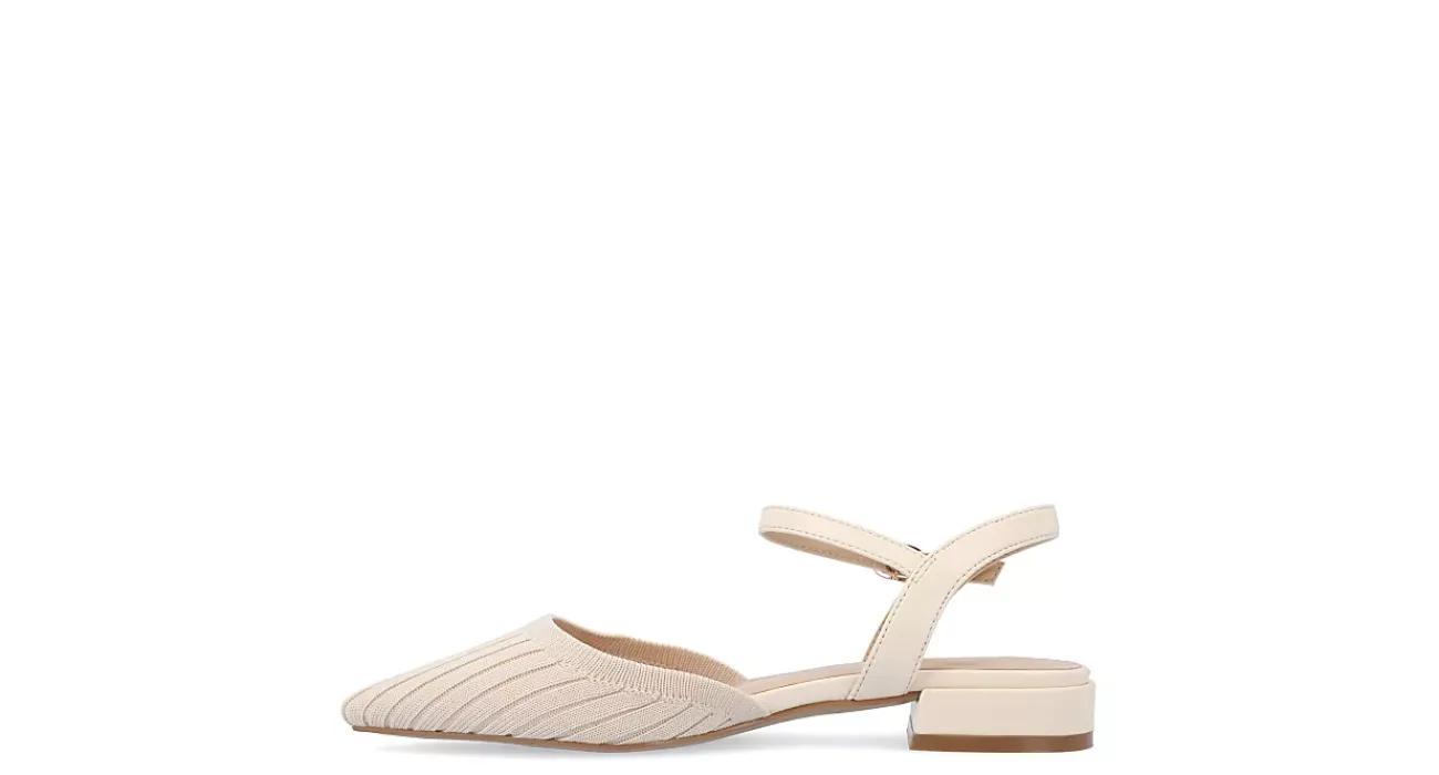 Comfort meets style with the Ansley women’s flat from Journee Collection. With a ribbed knit fabric upper featuring an adjustable ankle strap for a secure fit, this pointy-toe flat is guaranteed to be worn continuously throughout the season. A padded footbed supports every step, while the low block heel provides a slight lift.