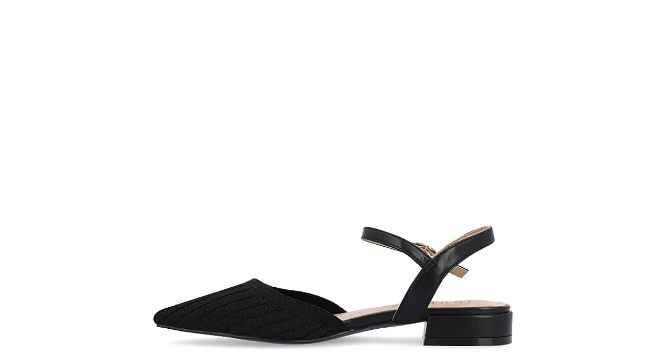 Comfort meets style with the Ansley women’s flat from Journee Collection. With a ribbed knit fabric upper featuring an adjustable ankle strap for a secure fit, this pointy-toe flat is guaranteed to be worn continuously throughout the season. A padded footbed supports every step, while the low block heel provides a slight lift.