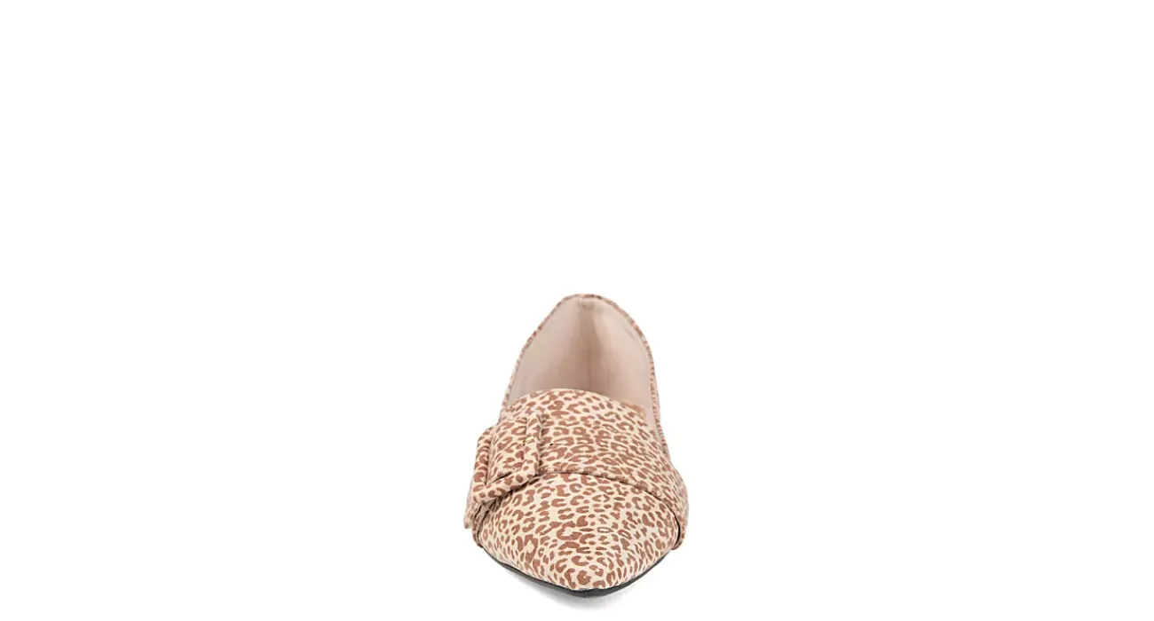 Pointed yet chic, the Journee Collection Audrey loafer is a great add to any outfit. With an animal print faux suede upper featuring a pointed toe and overlay buckle accent for a gorgeous finish. The padded footbed cushions every step while flat rubber sole helps with style versatility.