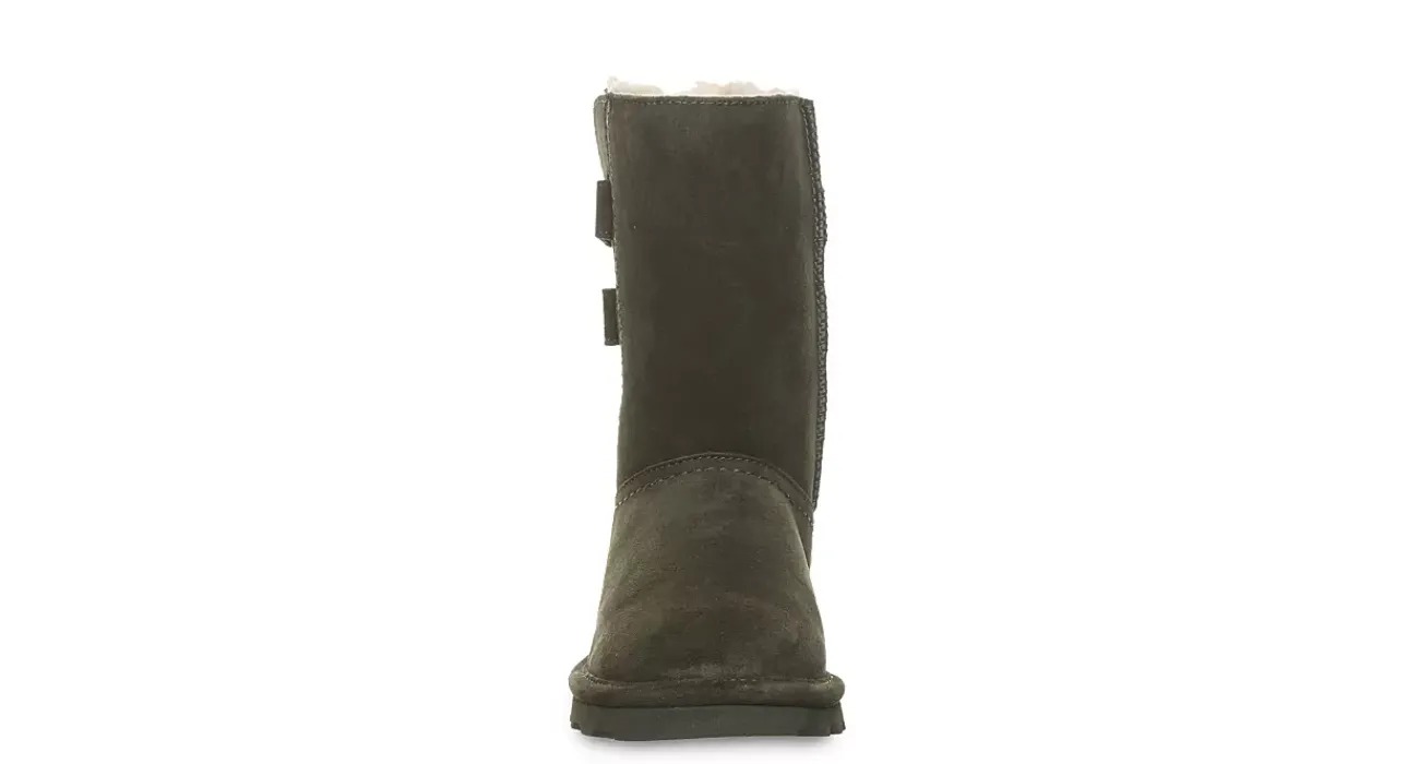 Bundle up, but keep it stylish in the Aurelia boot from Bearpaw. Featuring simple side buckles and a warm wool blend lining, theses 8″ boots are weather-resistent with BearCoatâ„¢ Rain and Stain Repellent treatment. The comfy footbed and lightweight sole make them feel like winning the fashion lottery.