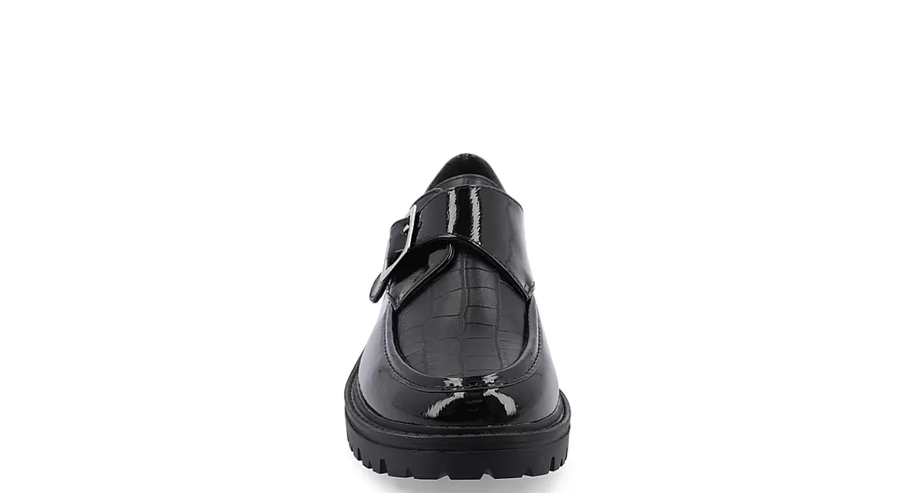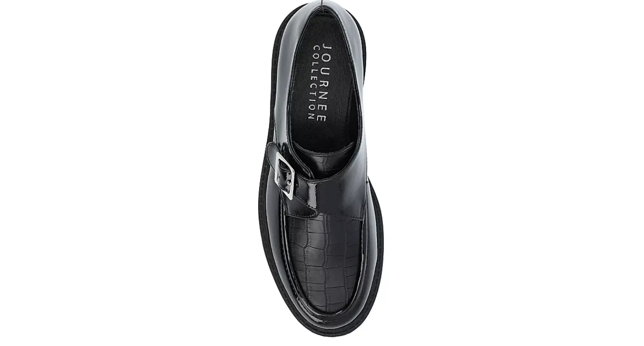 Move your fashion forward in the Azula women’s loafer from Journee Collection. Featuring a vegan patent leather upper with a croc print vamp for extra style, this two-tone shoe has a retro-styled funkiness. The Tru Comfort Foam footbed cushions while the traction keeps you moving confidently.