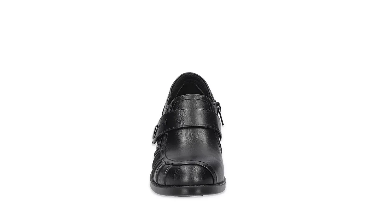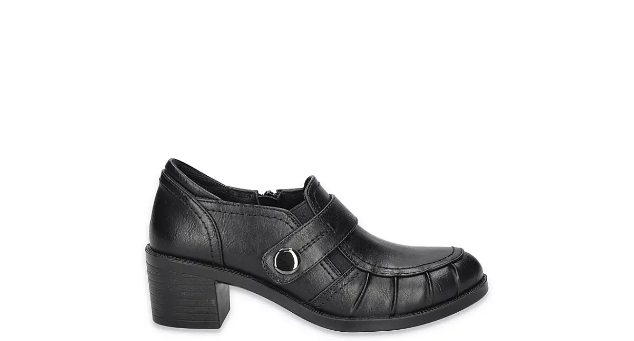 Create a unique look in the Easy Street Ballad clog. Featuring a faux leather upper with pleated detailing on one side and a Comfort Wave construction, these inside zip clogs are great for work or play. The Easy Motion by Easy Street insole cushions, while the block heel offers stability on your journey.