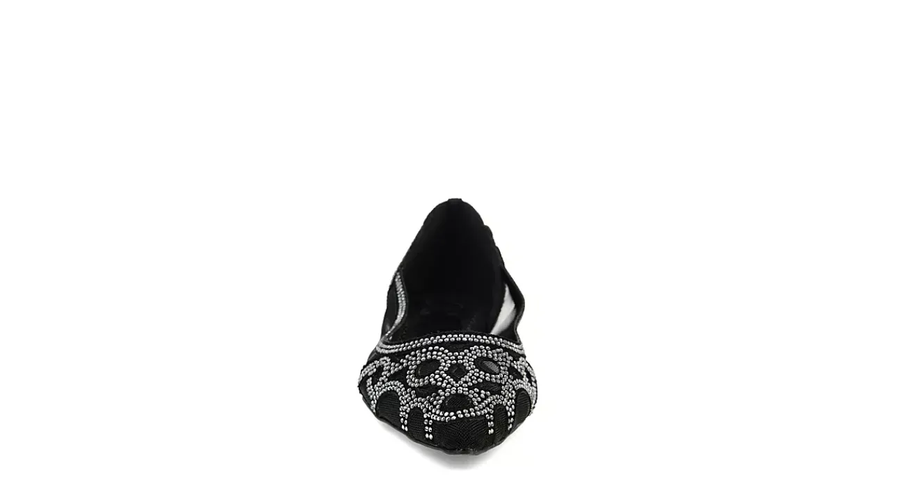Gather some enchanted evening in the Batavia women’s flat from the Journee Collection. With a mesh & synthetic upper featuring a pointed toe and scalloped heel for extra style, this slip-on flat adds some flair, no matter what you wear. The padded footbed cushions every step on the durable outsole.