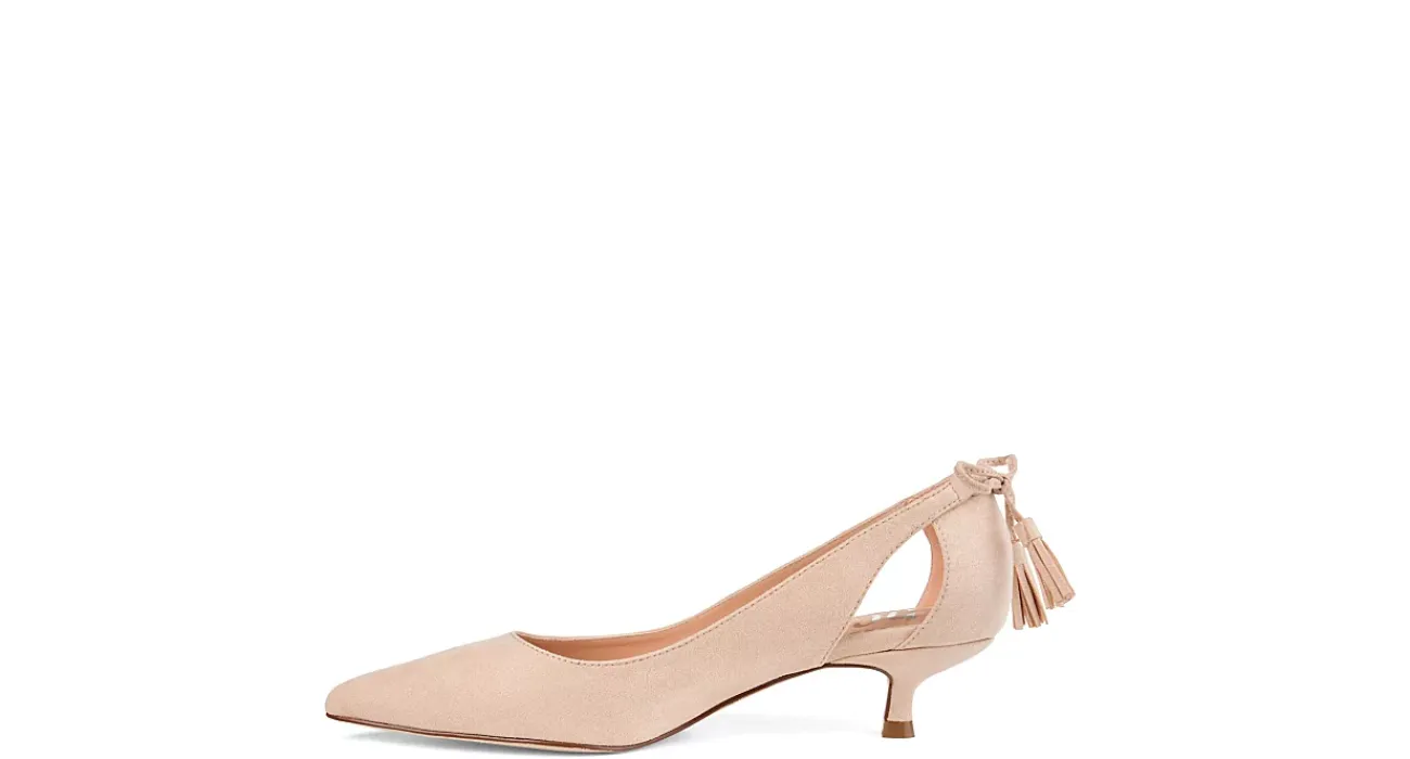 This Journee Collection Bindi heel is striking and polished, the perfect addition to your dressy attire. With a pointed toe, keyhole detailing and a tassel bit accent, this heel is every bit of high fashion. The 1 1/2″ kitten heel provides just enough of a lift to your silhouette.