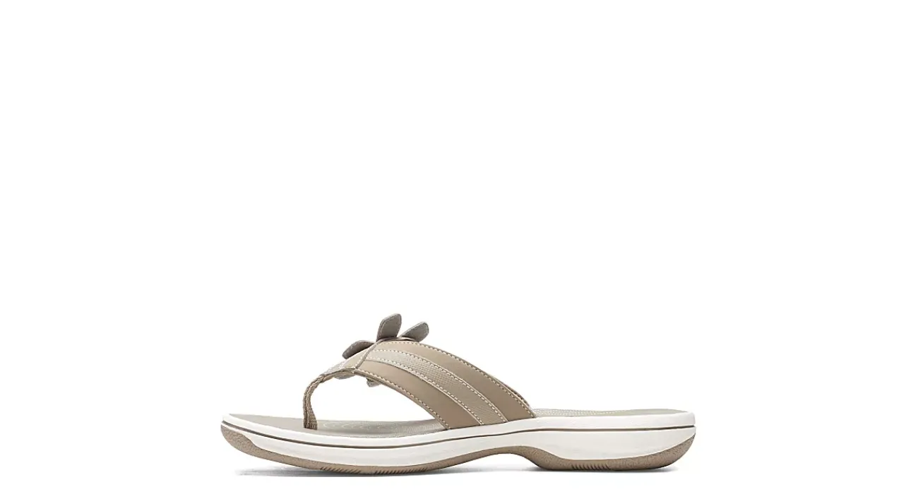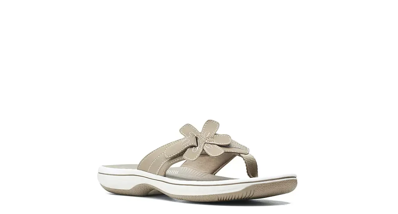 Feel like you’re stepping on clouds all summer long in the Clarks Brinkley Floral women’s sandal. With a faux leather upper decorated by a flower detail, this thong sandal is sure to become a favorite. The padded footbed comforts your foot while the synthetic outsole keeps you stable.