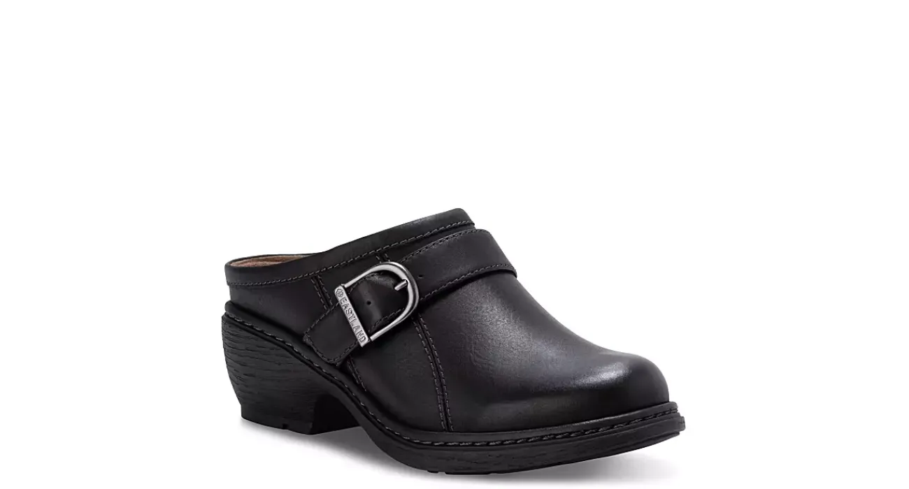 Sometimes a bit of clunky style is just what you need on a fall day – the Eastland Cameron women’s clog. Featuring a faux leather upper with stitched details and a soothing fabric lining, this buckle strap clog is made for jeans. The insole cushions every step while the synthetic outsole is slip-resistant with just enough heel.