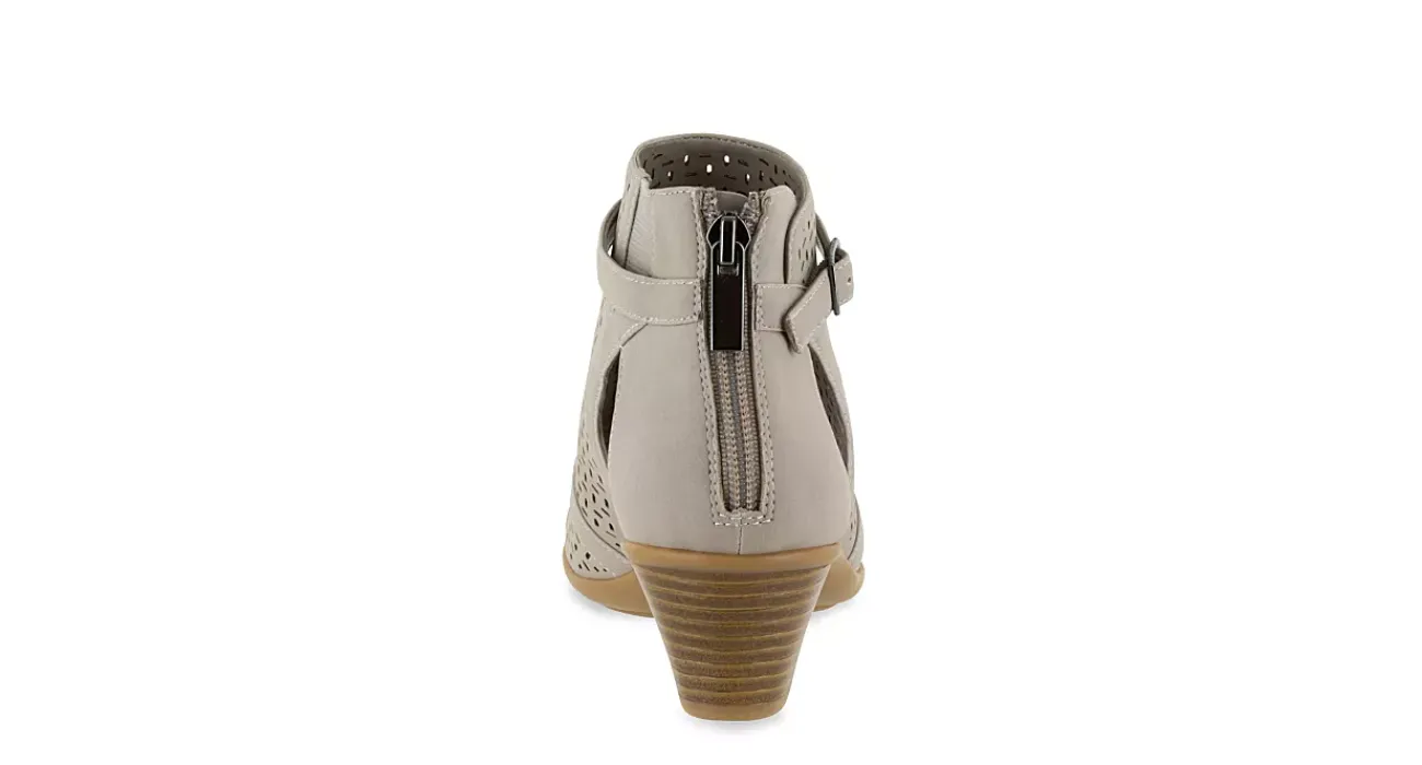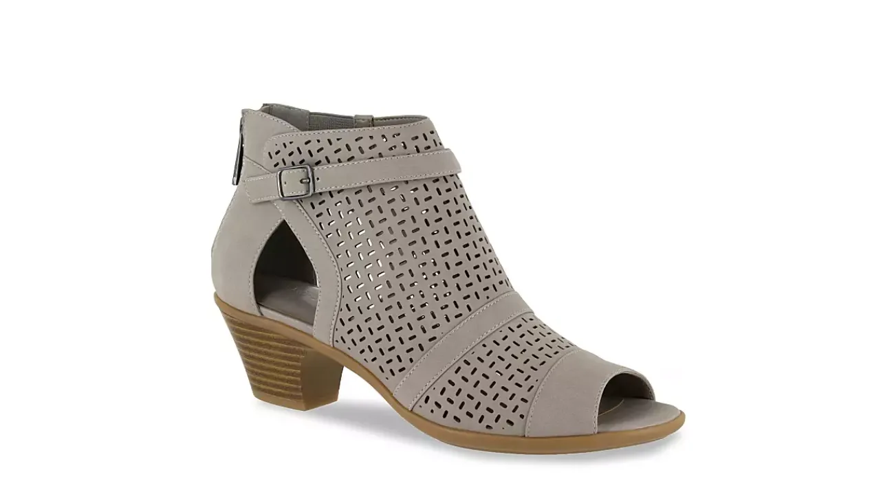 Add some sophistication to the fun of summer in the Easy Street Carrigan women’s shootie. With a faux leather upper and laser cutouts, this rear zip shoe + bootie gives structure to amp up all of your warm weather outfits. The padded footbed offers cushioning while the synthetic outsole provides stability.