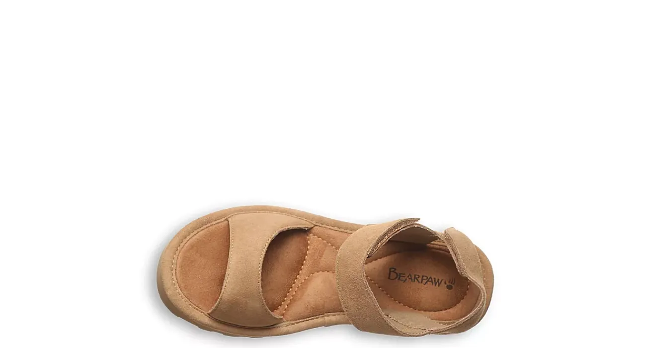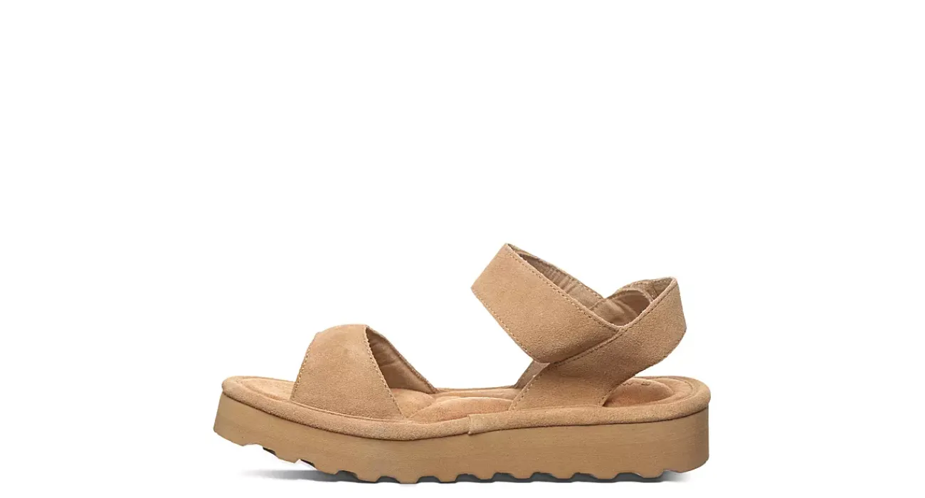 Confidently show off your style in the Crest women’s sandal from Bearpaw. Featuring a canvas or faux leather upper with a microsuede insole, this flatform sandal gives you that great slip-in feel. The quilted footbed cushions while the midsole & outsole offer just enough lift.