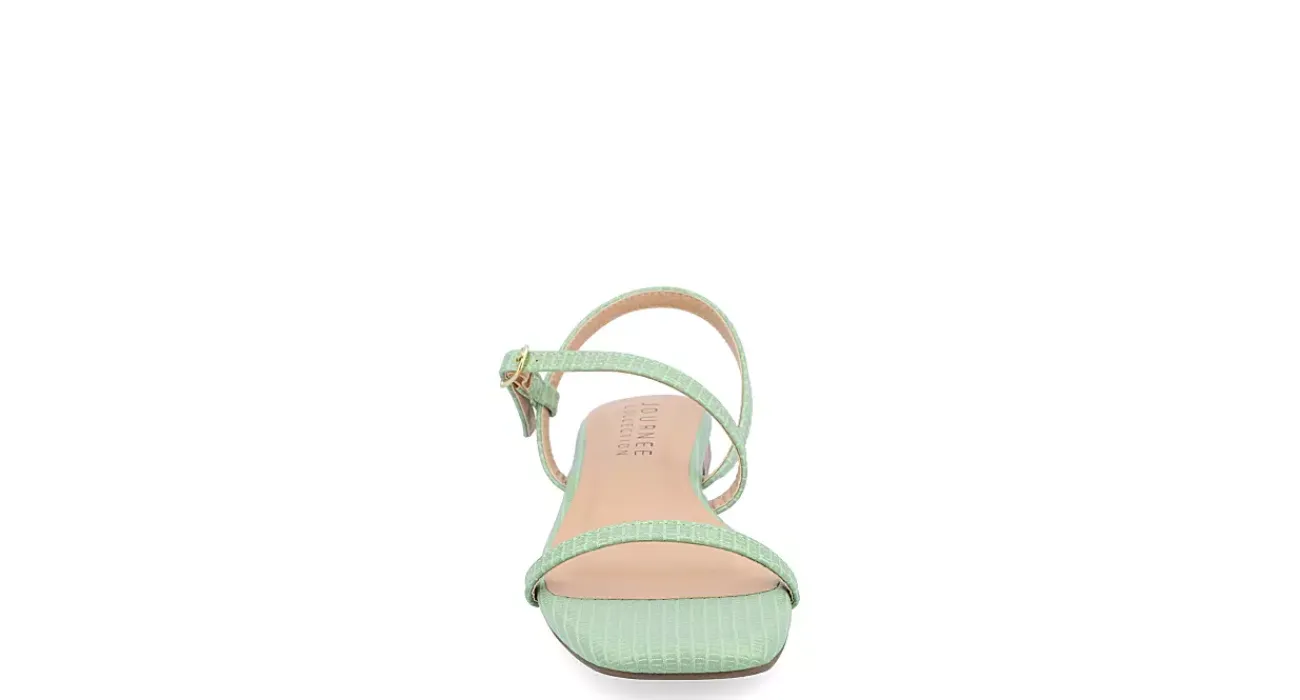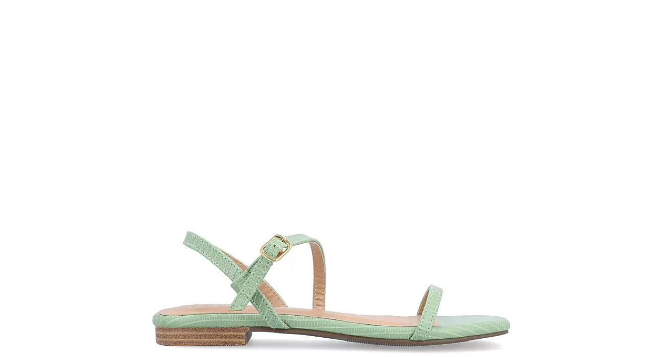 Channel your inner fashionista with the Crishell women’s flat sandal from Journee Collection. With a textured vegan leather upper featuring an easily adjustable dainty ankle strap for a perfect fit, this minimalistic sandal is guaranteed to be a must-have this season. The padded footbed cushions your feet, while the barely-there stacked block heel offers a subtle lift.
