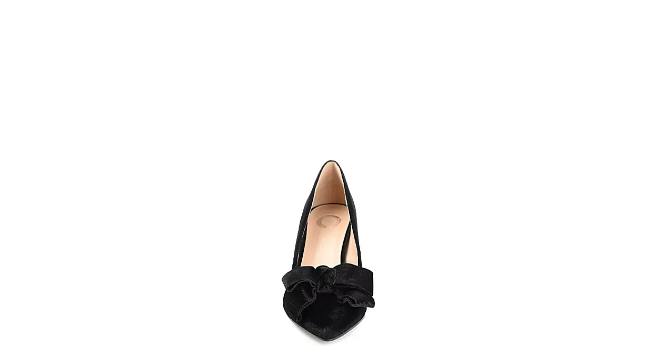 Highlight an elegant look with the Crystol women’s pump from the Journee Collection. With a bold velvet fabric upper featuring a decorative bow accent for a touch of feminine flair, this pointy-toe pump is guaranteed to turn heads at holiday parties. A lightly padded footbed soothes your foot, while the 2 3/4″ heel creates a flattering lift.