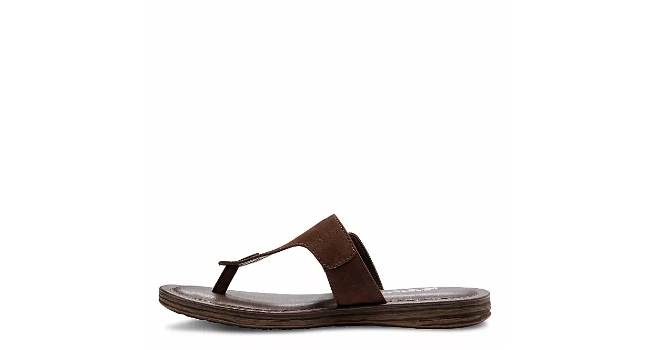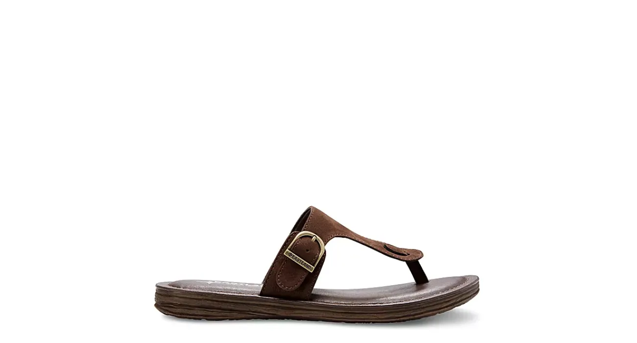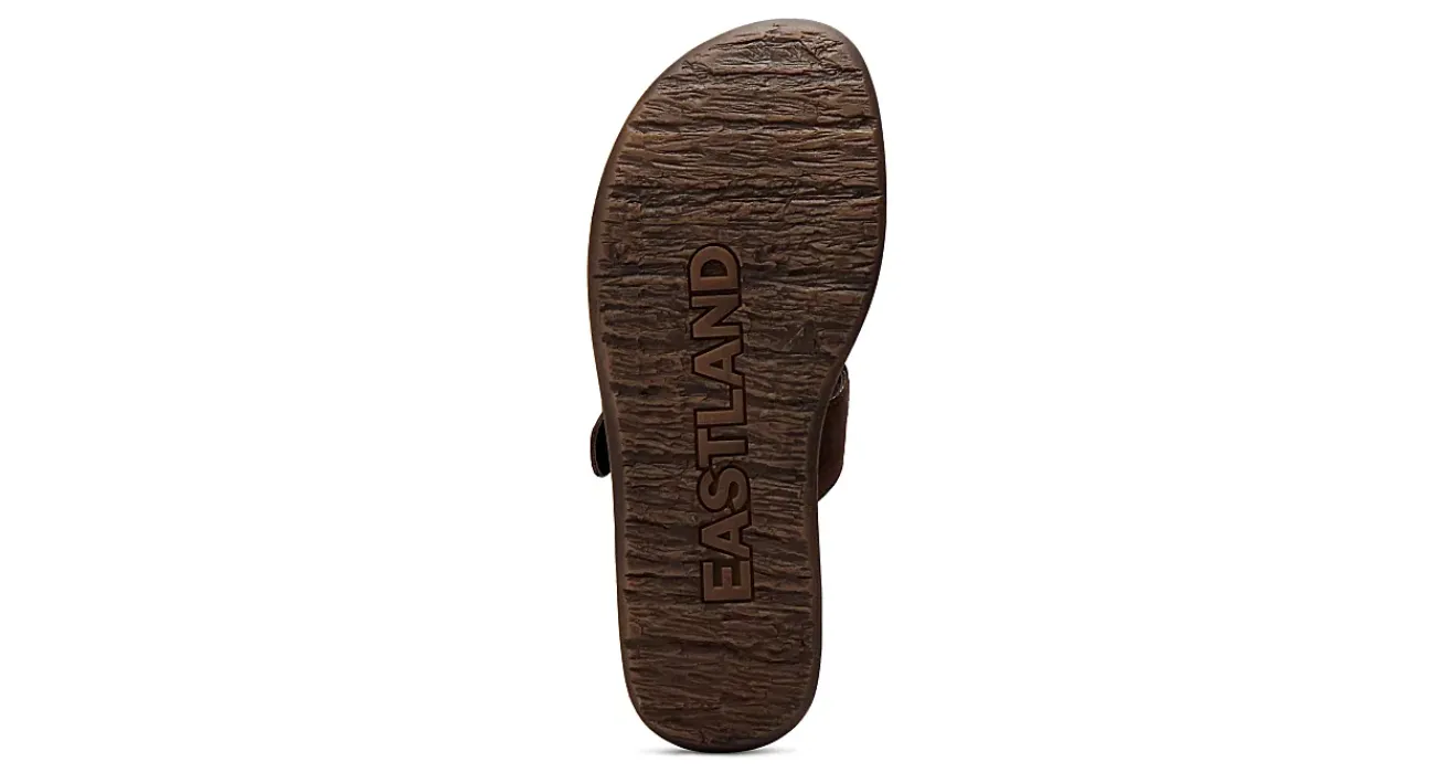 Don’t get caught slipping with your style in the Eastland Emilia women’s sandal. With a faux leather upper and decorative buckle strap across the instep, this slip-on sandal also features a thong construction to have your toes out all summer long. The Memory Foam footbed offers comfort while the TPR sole resists slip ups.