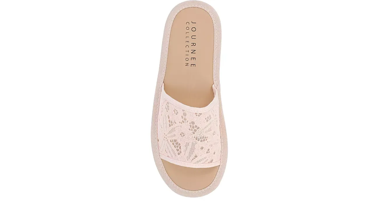 Fashionable yet casual, the Eniola women’s slip-on sandal from Journee Collection is a must-have for your closet. With intricate lace detailing featuring an open round-toe silhouette, this lovely sandal lends a delicate feminine flair to any look. A Tru Comfort Foam™ footbed offers incredible cushioning to your feet, so every step feels better than the last.