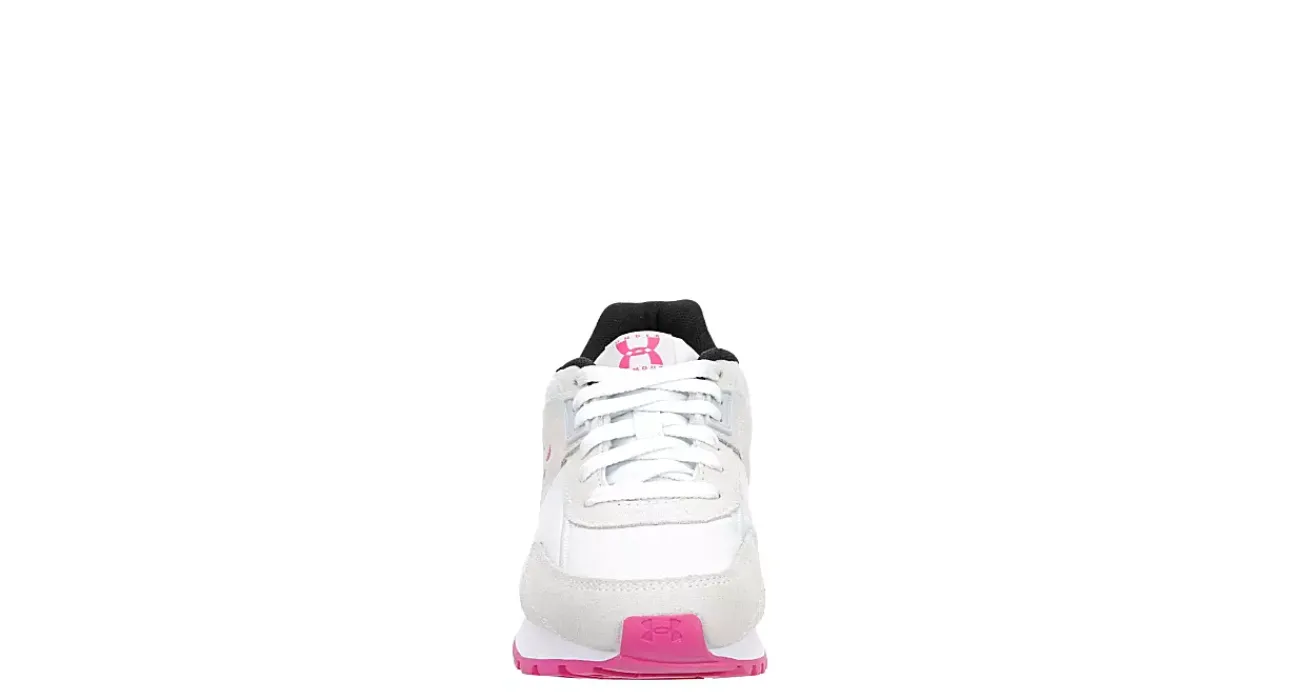 Classic style that fits a variety of situations — the Essential Runner women’s sneaker from Under Armour. With a breathable nylon upper featuring suede overlays, this lace-up sneaker has a deluxe foam sockliner. The cushioned midsole offers lightweight comfort, while the durable outsole provides flexible traction.