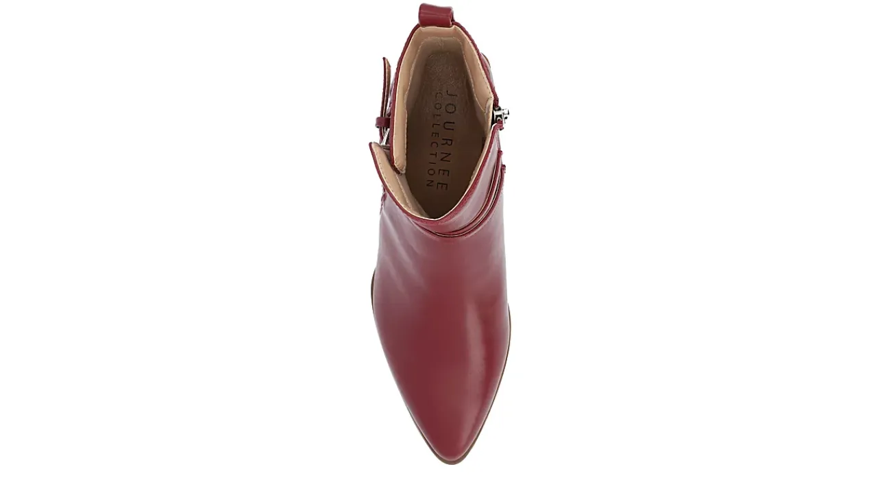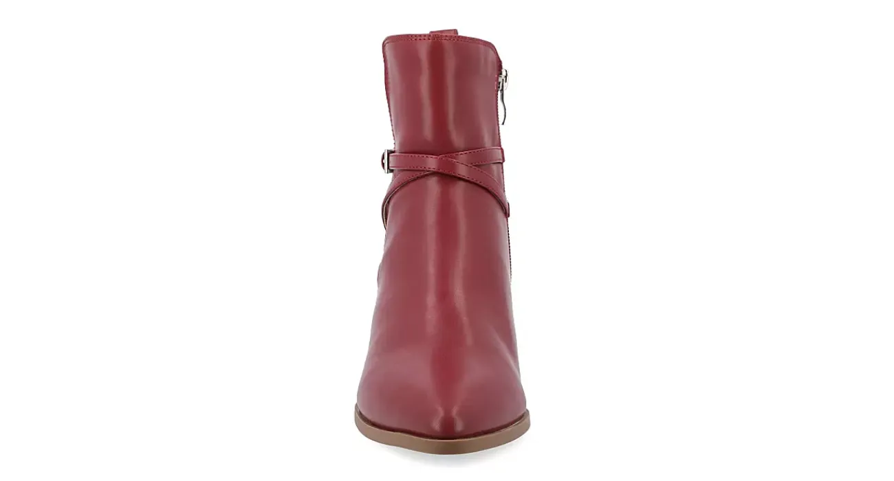 Fall back into your best style in the Estelle women’s bootie from Journee Collection. With a vegan leather upper featuring a sleek pointed toe, this bootie has a chic wraparound buckle strap detail. The Tru Comfort Foam™ cushions every step while the heel adds stable height.
