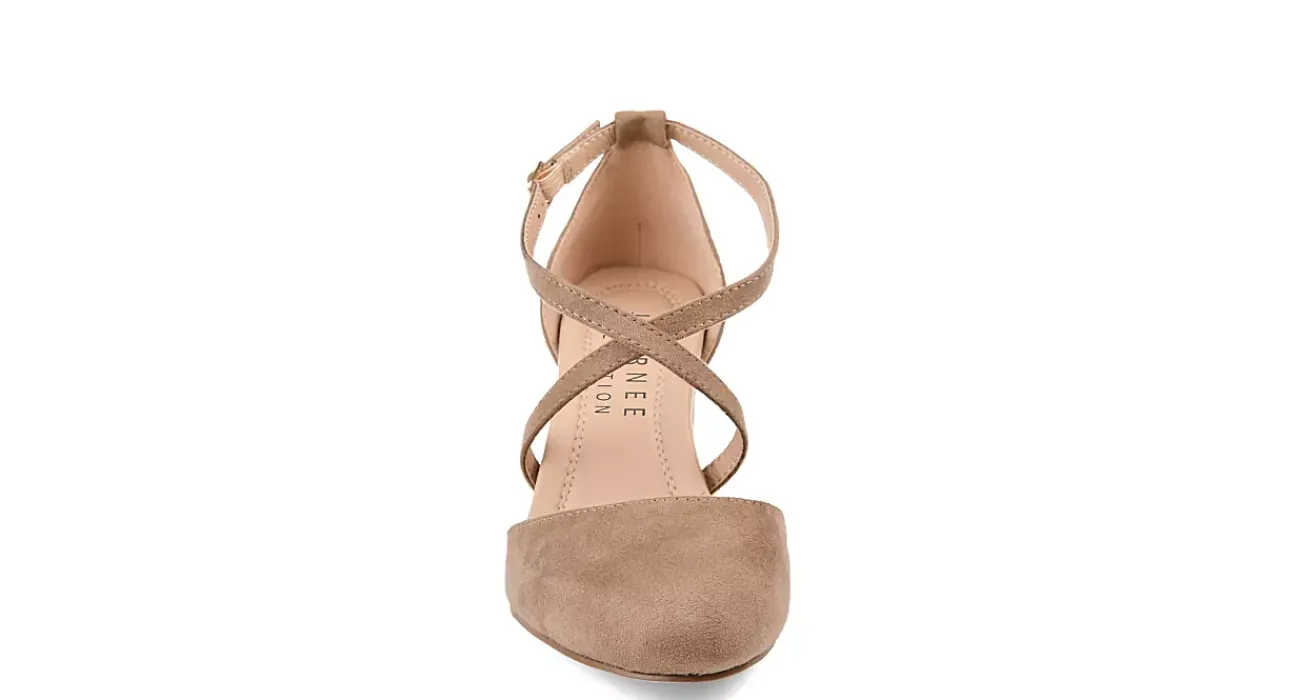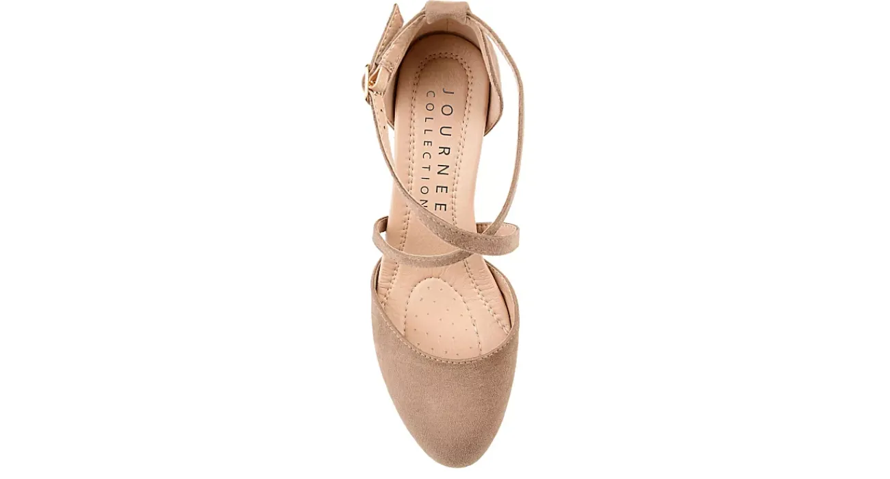 Dress to impress with the Foster Wide women’s pump from Journee Collection. With a microsuede upper featuring a crisscross strap design, this flattering d’Orsay style pump is the epitome of vintage chic. The Tru Comfort Foam™ footbed offers above-par cushioning, while the block heel provides a stable lift.