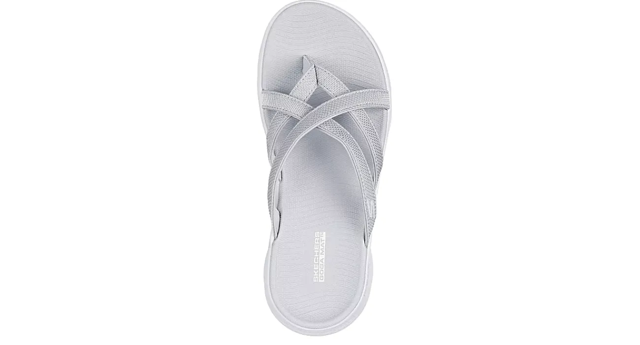 By summer, the GO WALK Flex – Strut women’s sandal from Skechers, has comfort you can appreciate. With a textile upper with a multi cross-strap design for extra style, this thong sandal is machine washable. The contoured Goga Mat® footbed & ULTRA GO® cushioning cradle your foot, while the outsole offers flexible traction.