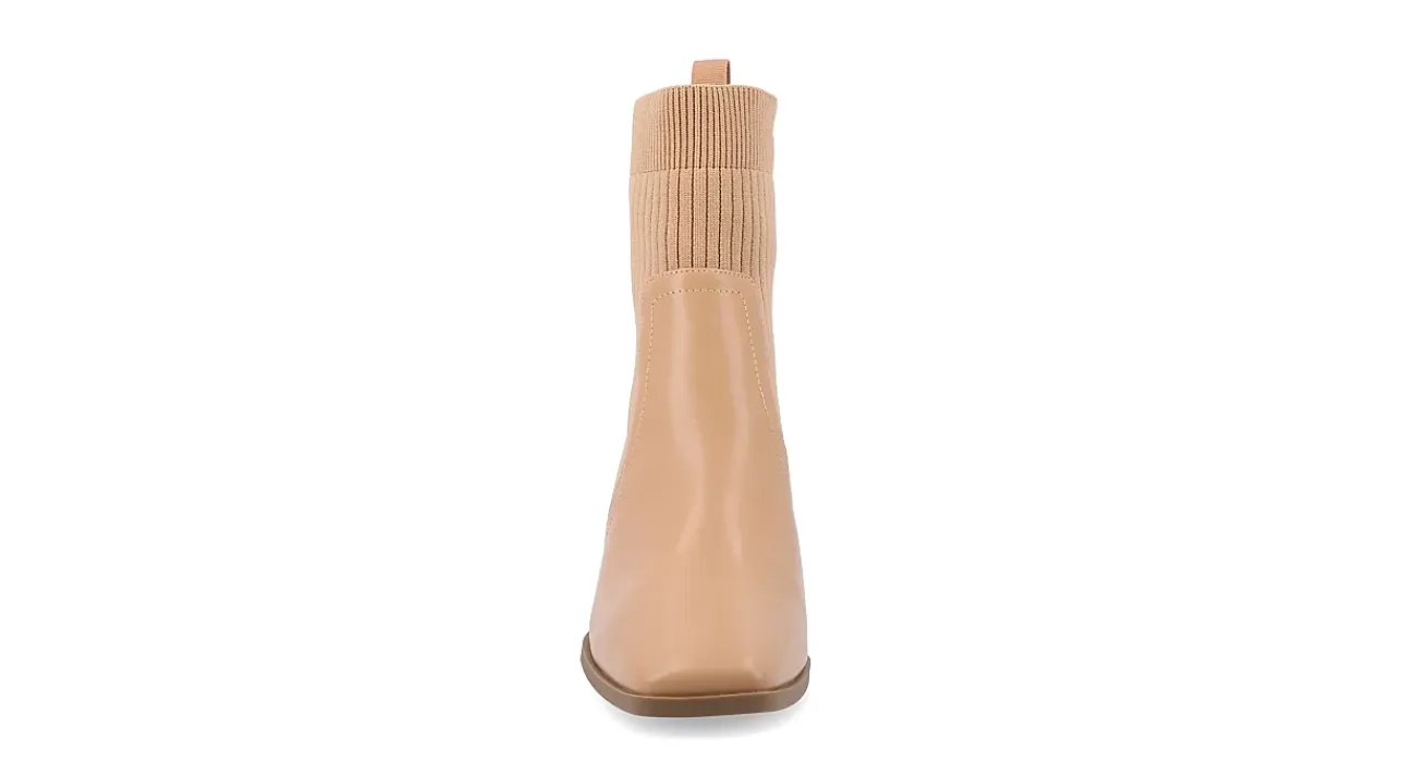 Mix and match your fave fall looks with the Harlowe Wide women’s bootie from Journee Collection. Featuring a vegan leather & stretch knit upper with a square toe, this Chelsea ankle boot elevates your look in jeans or a long skirt. The Memory Foam insole cushions every step while the stacked heel gives more than enough lift.